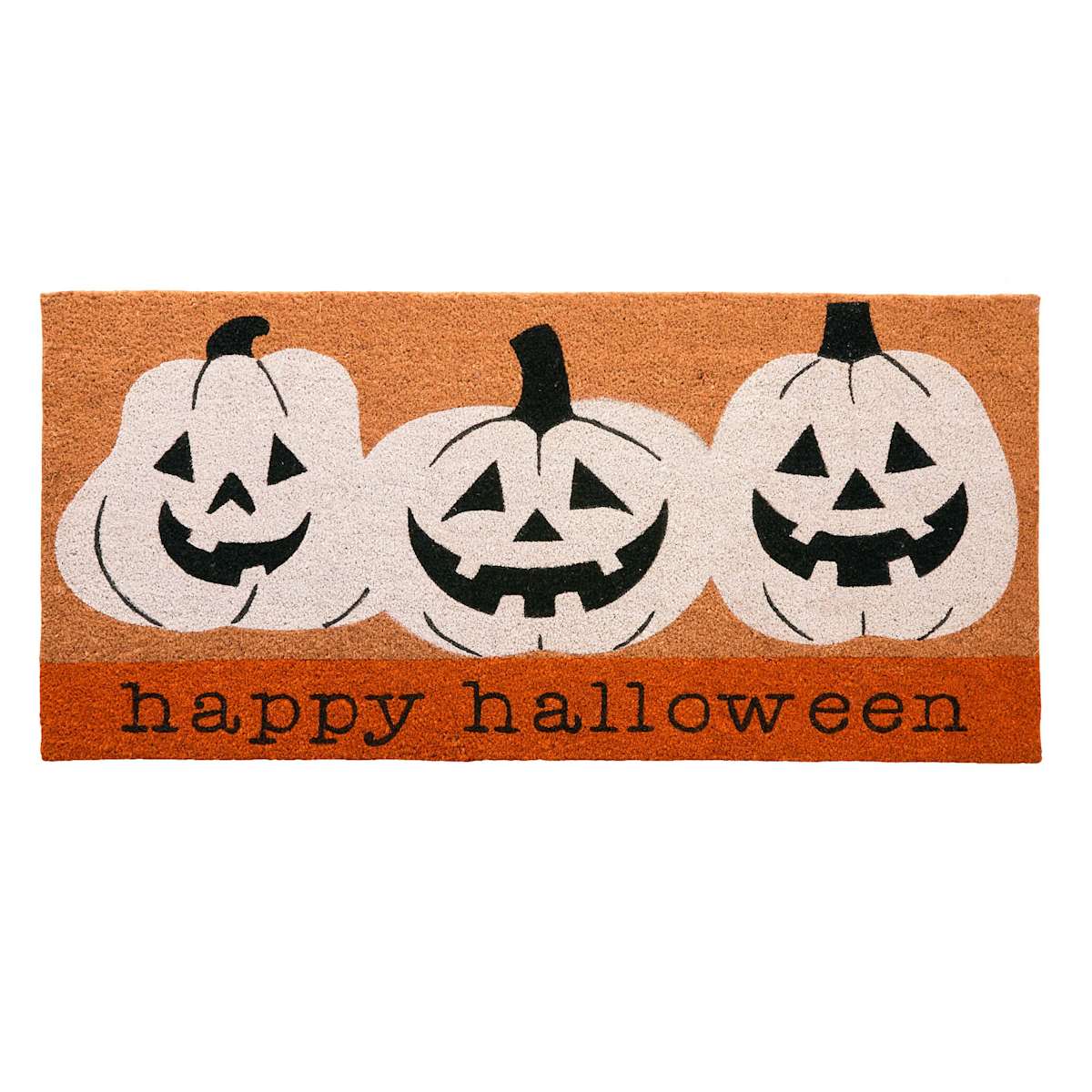 Happy Haunting White Jack-o'-Lantern Happy Halloween Coir Mat, 22x47