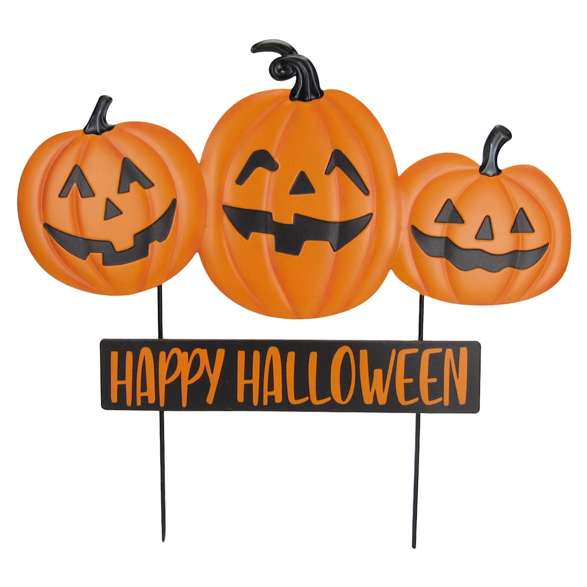 Happy Haunting Three Jack-o'-Lanterns with Happy Halloween Metal Yard Stake, 24"