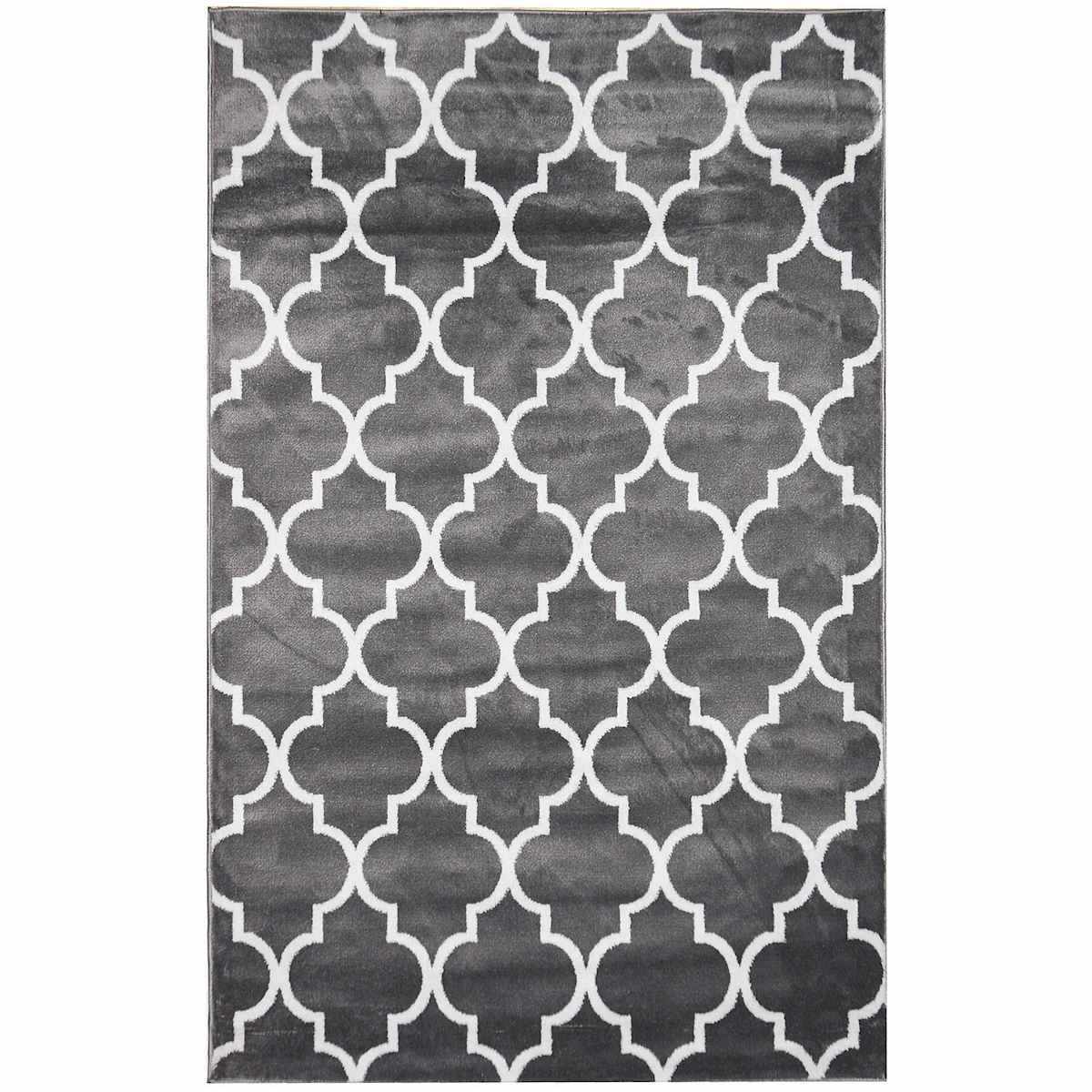 (D394) Dark Grey & White Quatrefoil Design Runner, 2x7