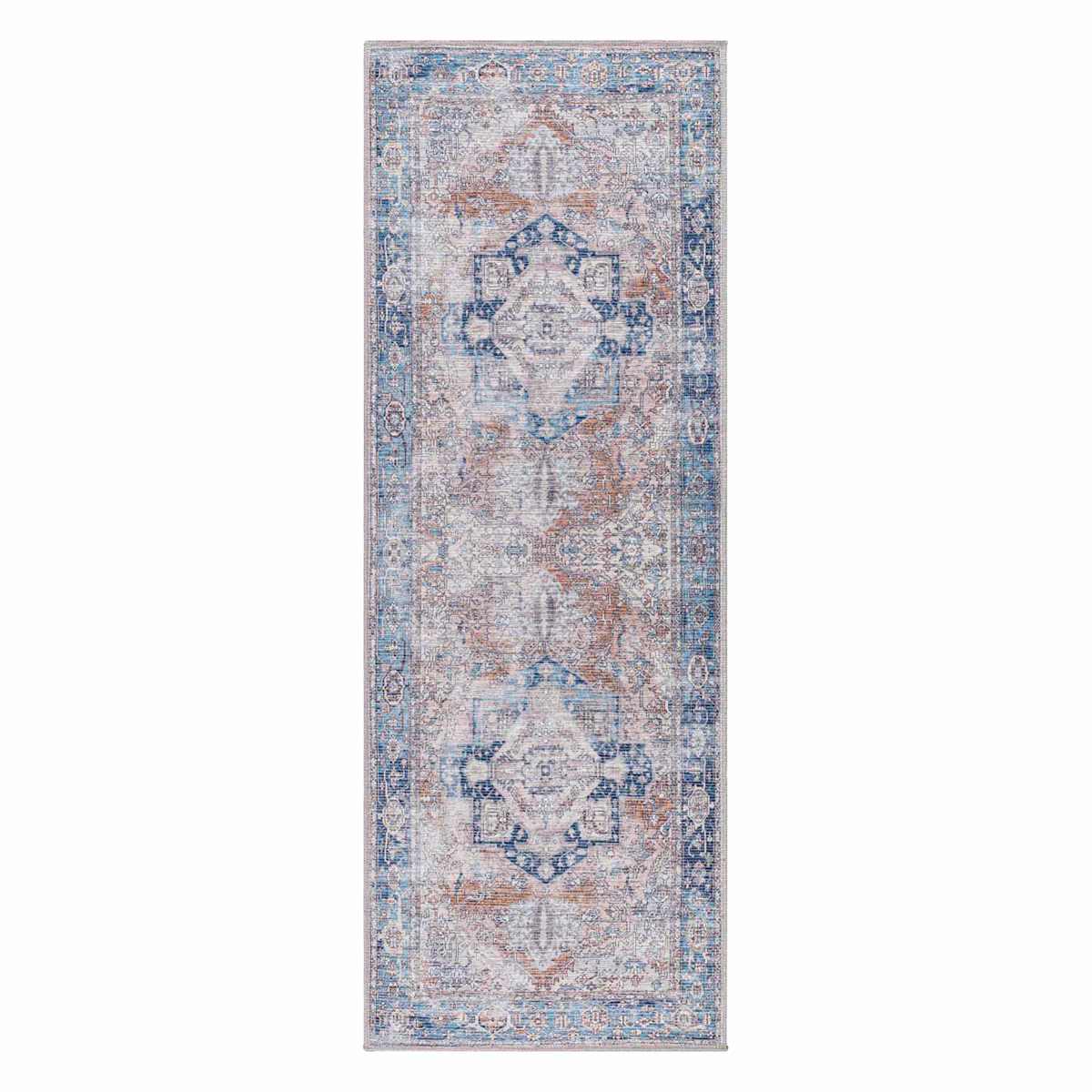 (B882) Colin Blue Medallion Washable Runner, 2x7