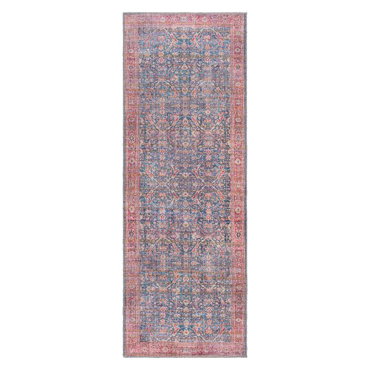 (B860) Honeybloom Colin Red & Blue Floral Medallion Washable Runner, 2x7