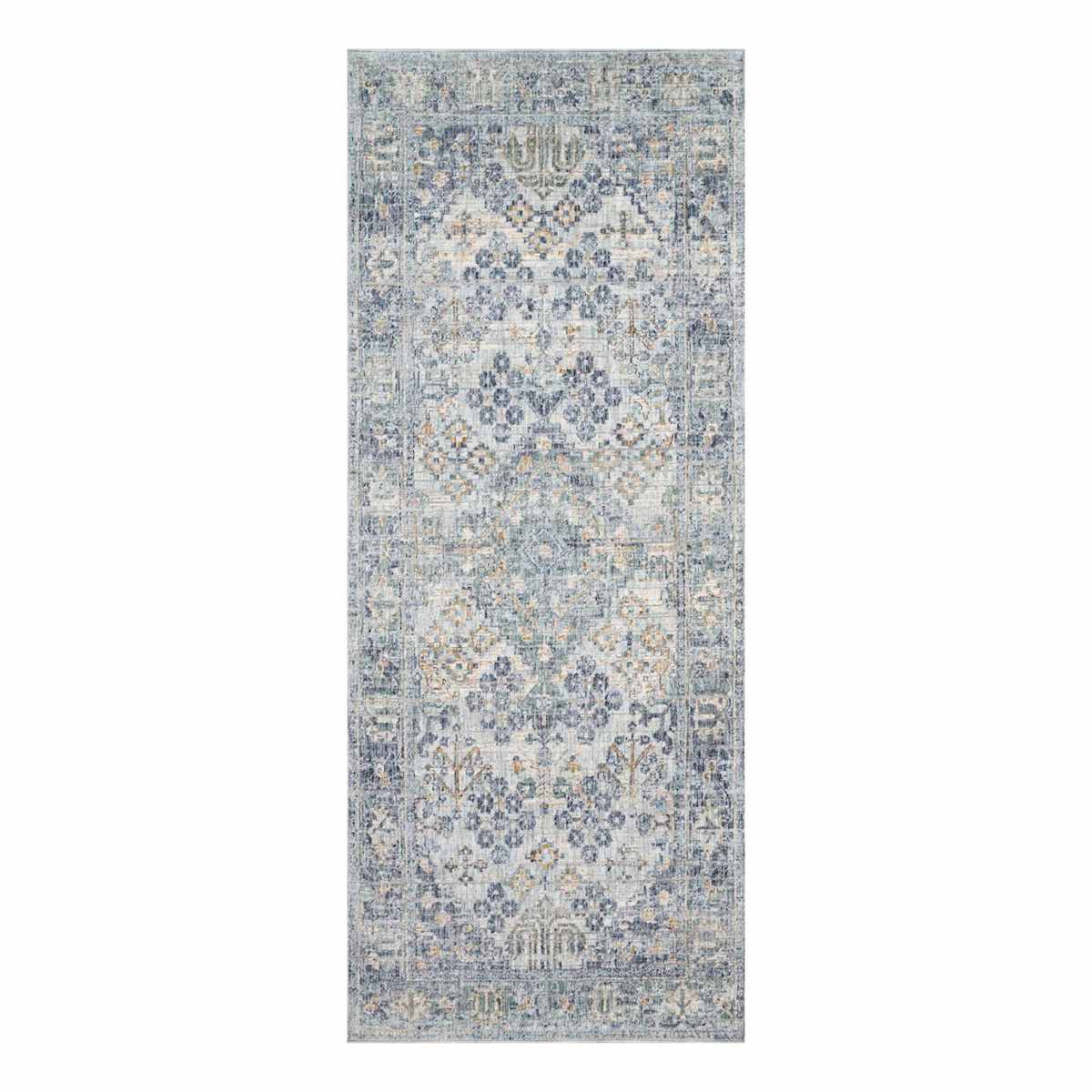 (A377) Providence Venice Distressed Look Blue Runner, 2x7