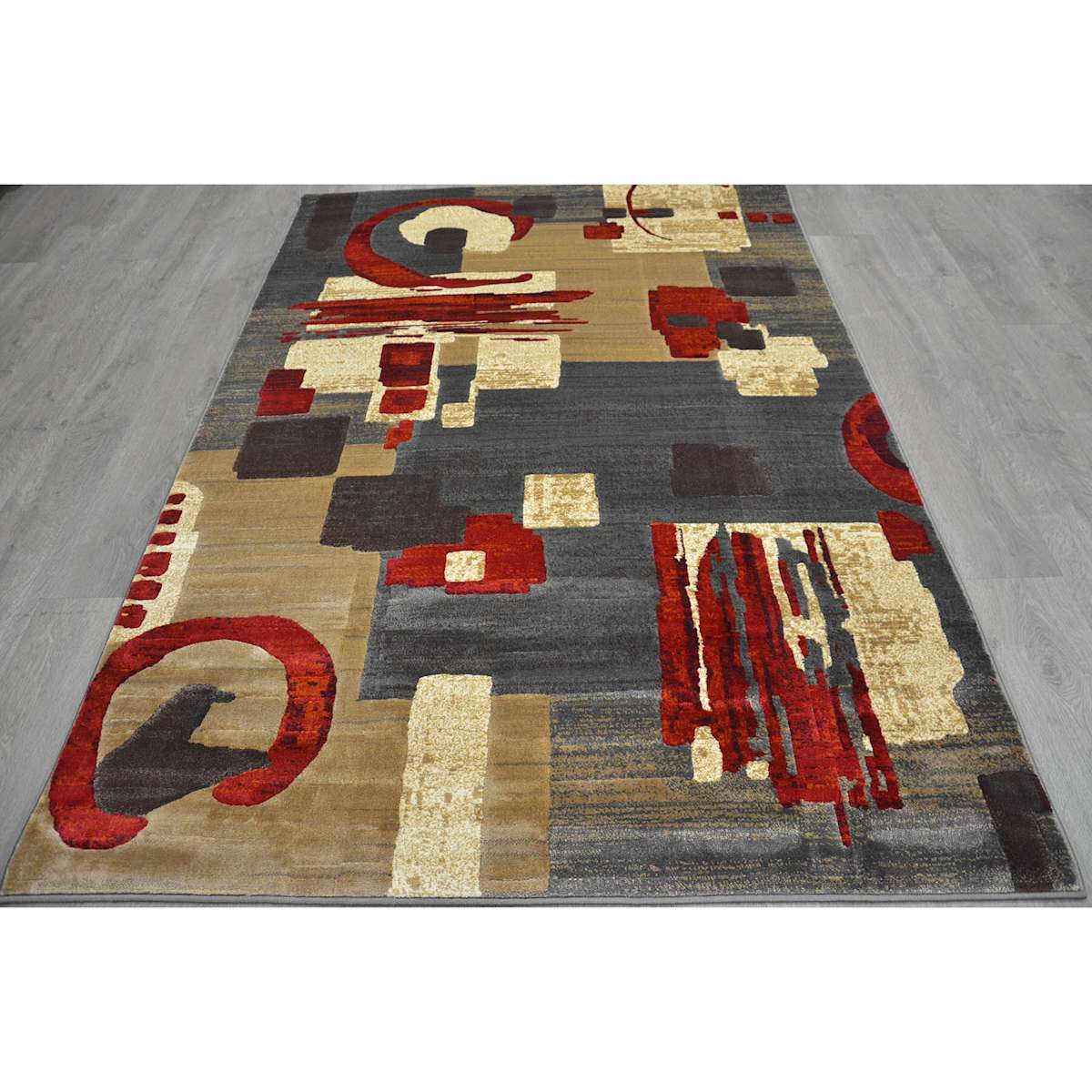 (B142) Beige & Red Modern Abstract Design, 3x5