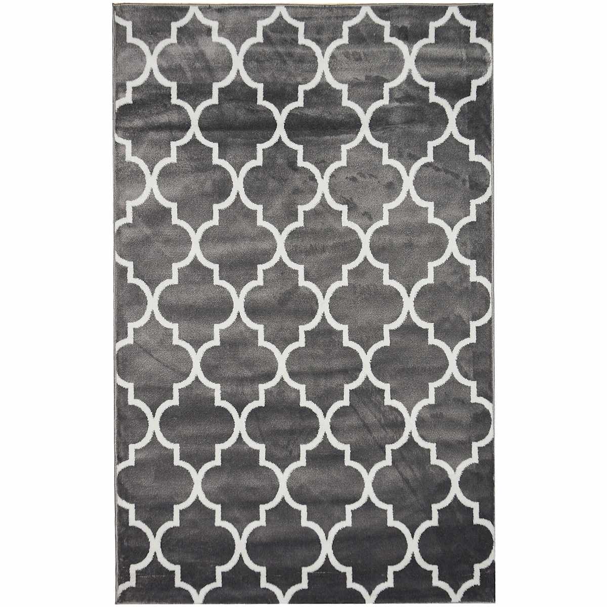 (D394) Dark Grey & White Quatrefoil Design Area Rug, 5x7