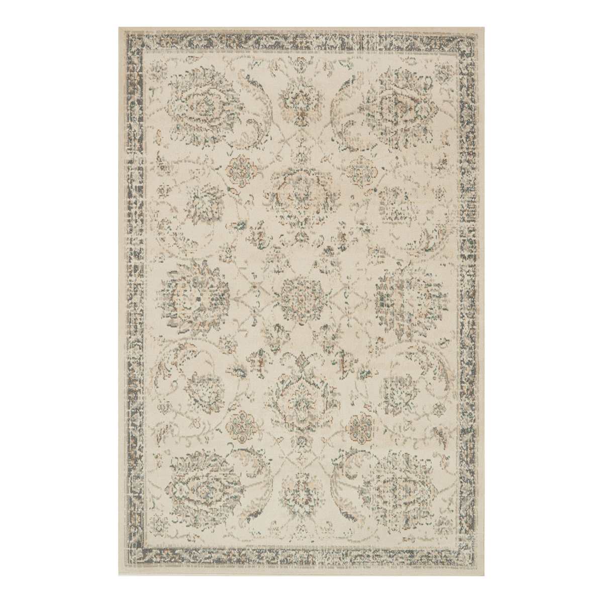 (D384) Norwich Traditional Ivory & Beige Area Rug, 5x7