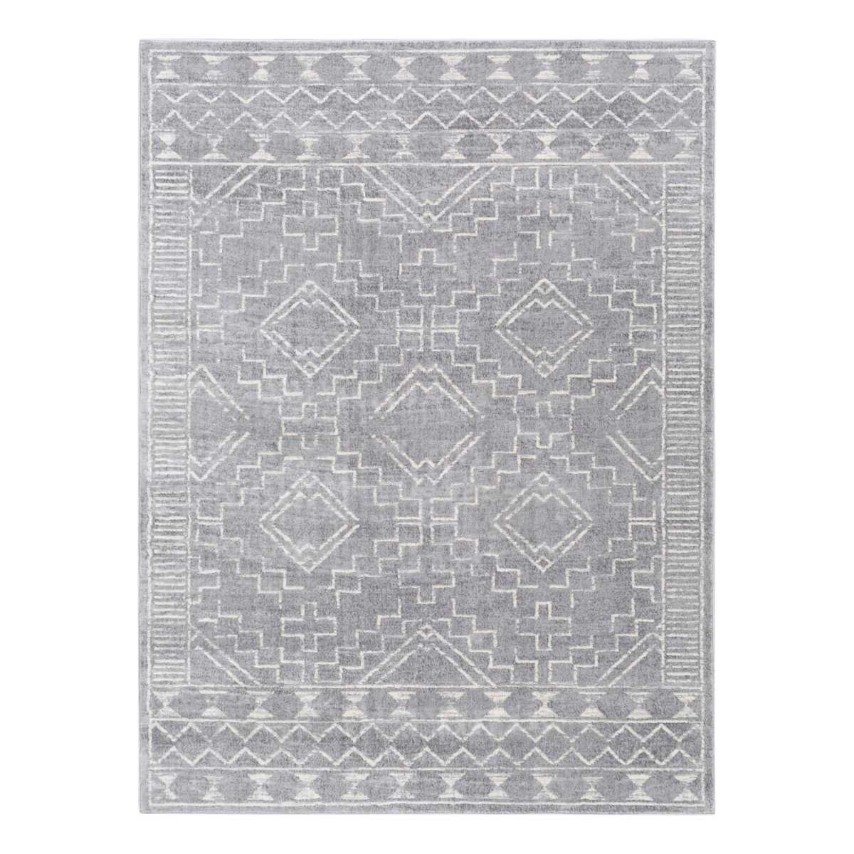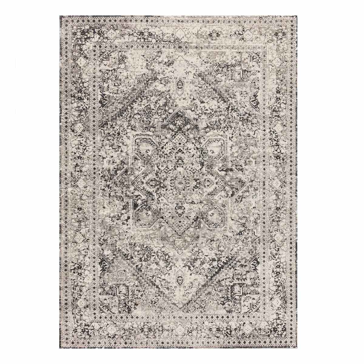 (A436) Honeybloom Penelope Grey Diamond Distressed Look Area Rug, 5x8