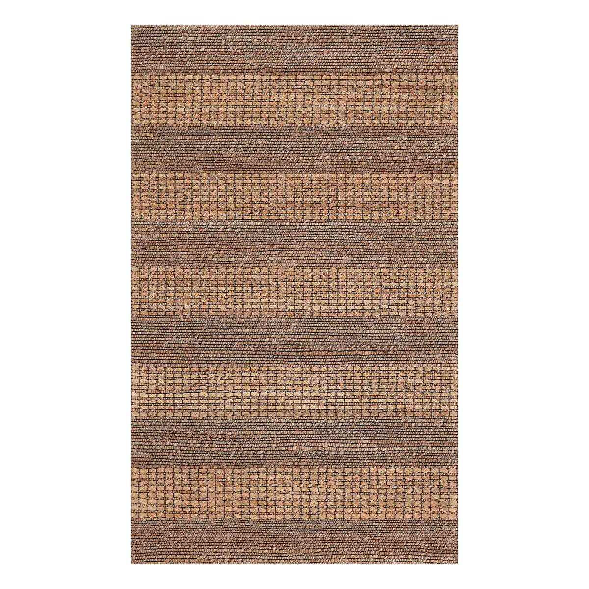 (B870) Found & Fable Aaron Brown & Natural Striped Jute Accent Rug, 3x5