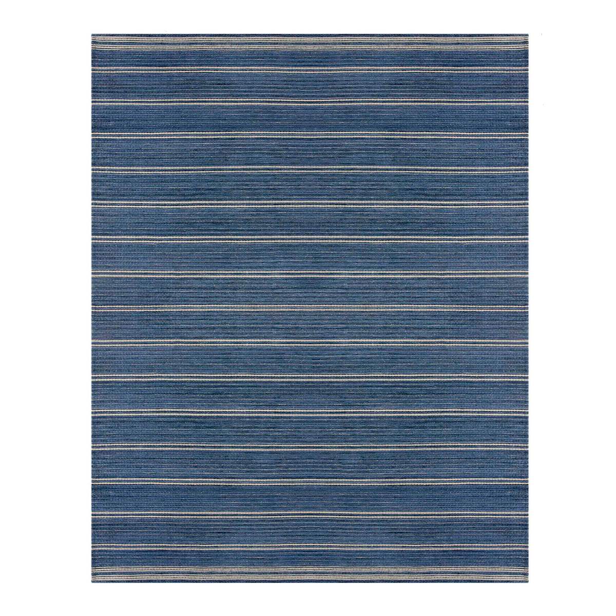 (B824) Terrace Indigo Striped Flatweave Area Rug, 8x10