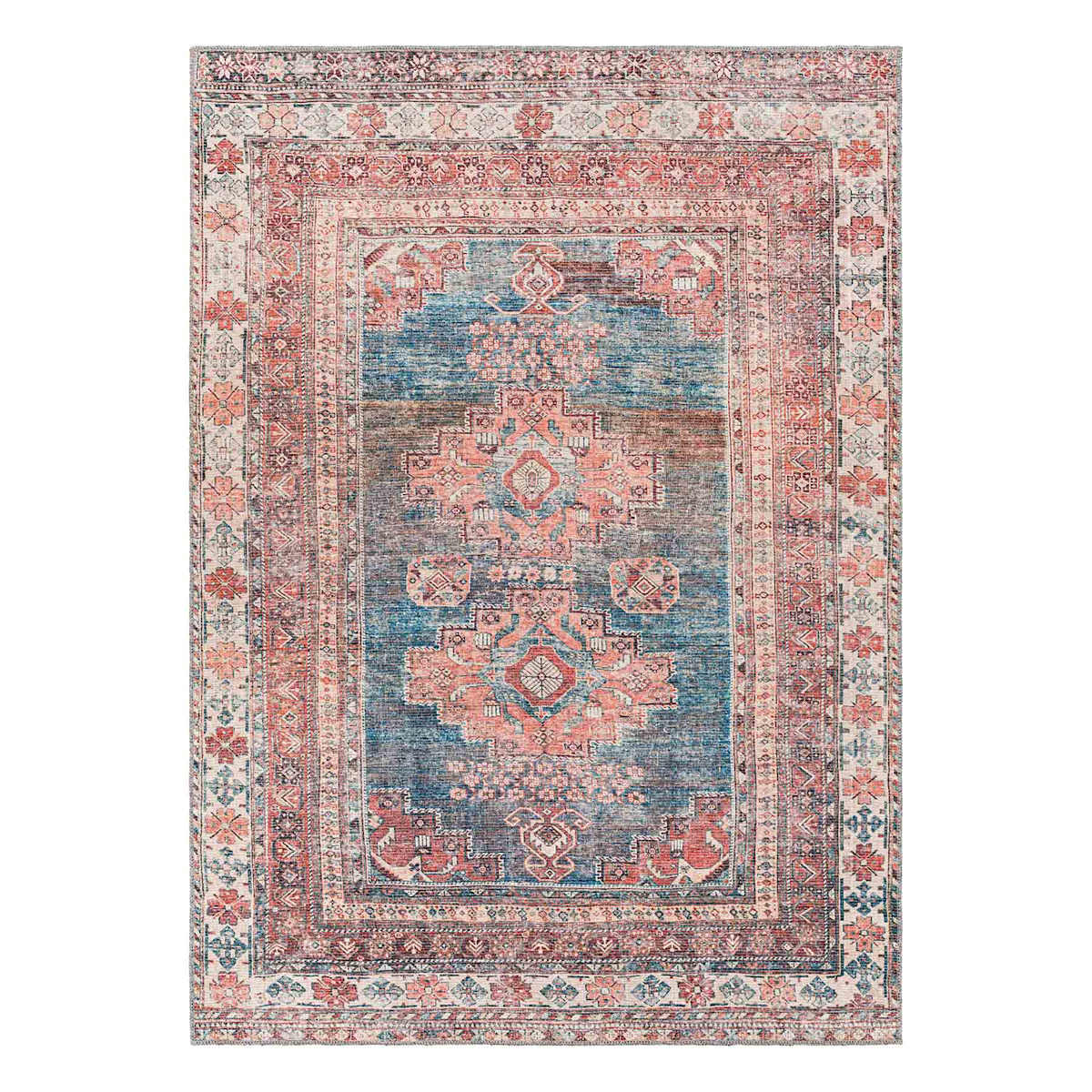 (B859) Colin Red & Blue Multi Medallion Washable Area Rug, 5x7