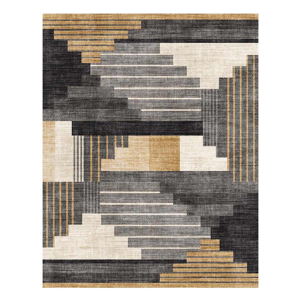 (B874) Crosby St. Dove Navy & Gold Washable Area Rug, 8x10