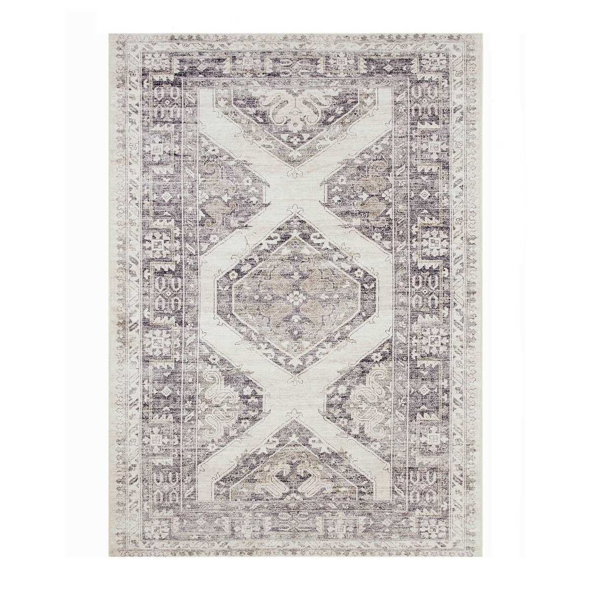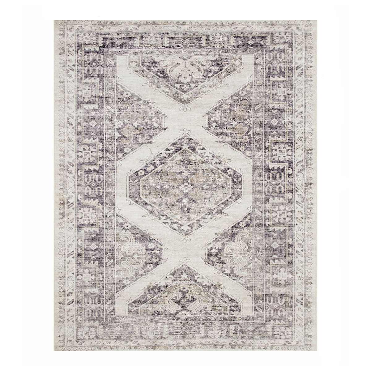 (B829) Grey & White Floral Washable Area Rug, 5x7