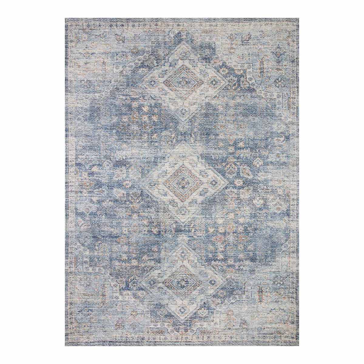 (B822) Whittington Blue Floral Medallion Area Rug, 5x7