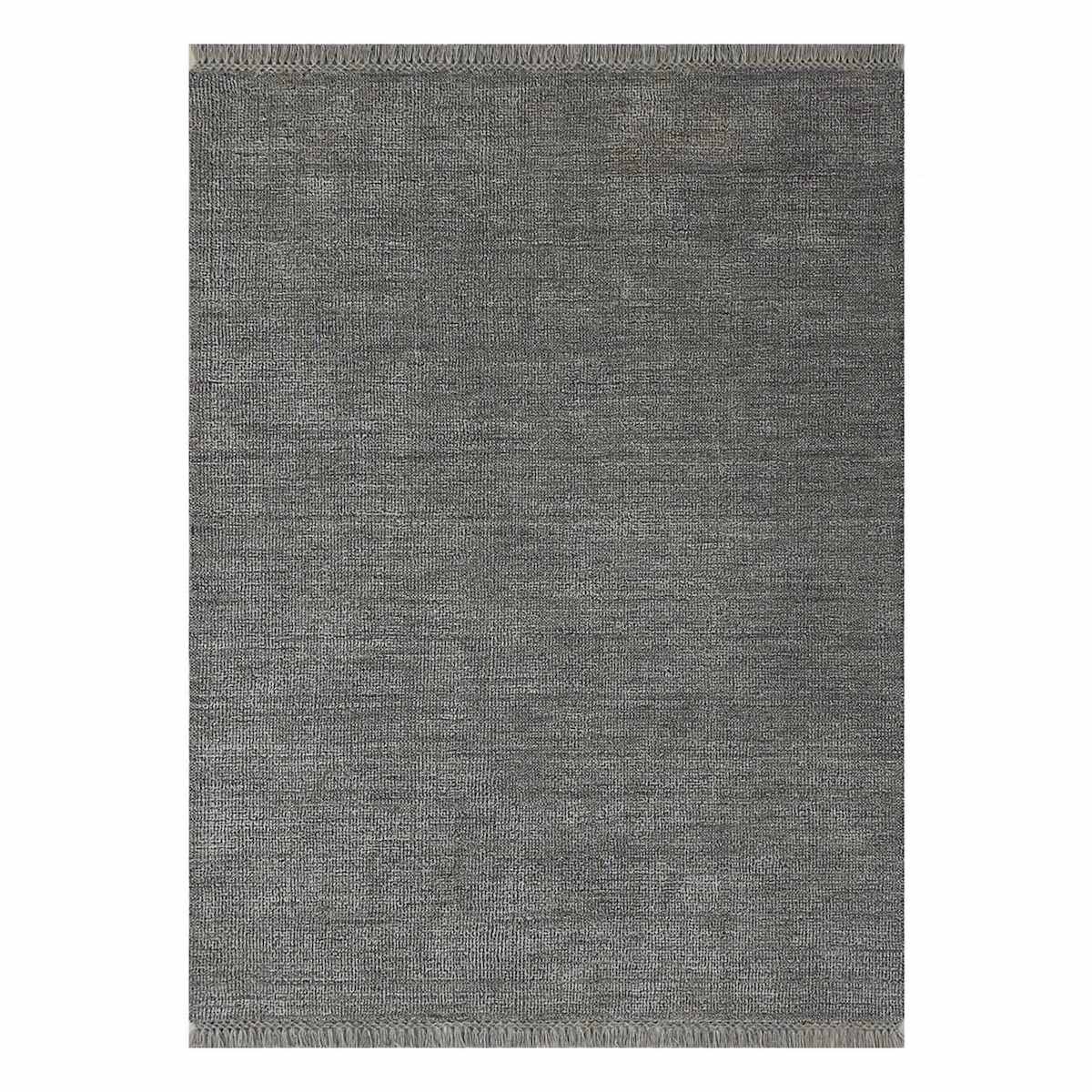 (B731) Crosby St. Hollis Grey Woven Fringe Area Rug, 5x7