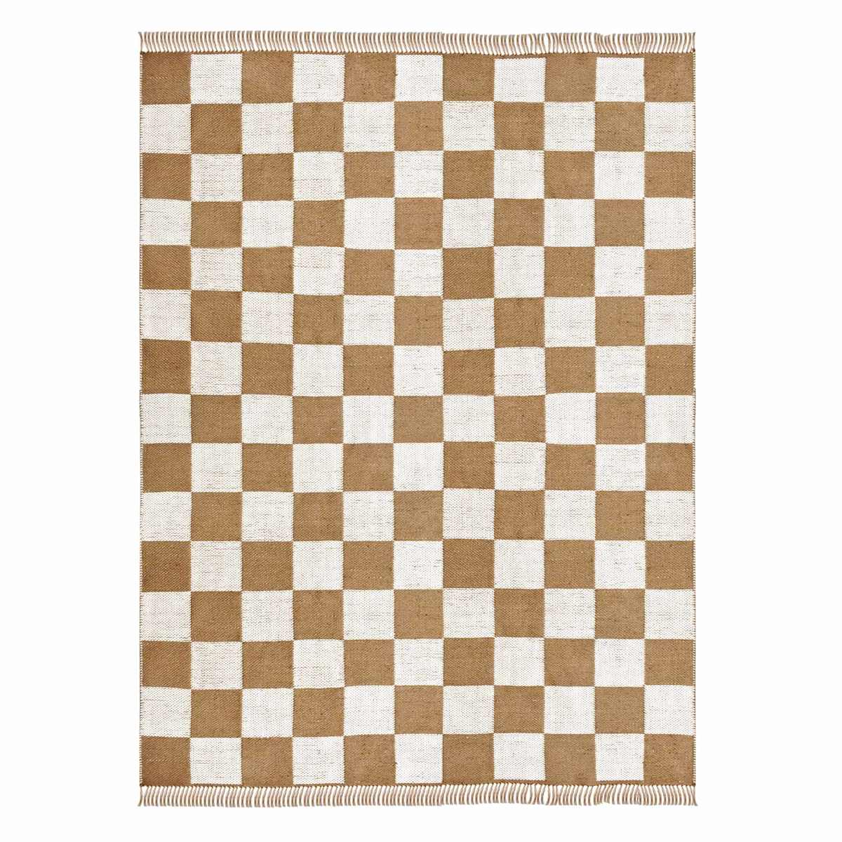 (B871) Honeybloom Brown & Natural Checkered Jute Area Rug, 5x7