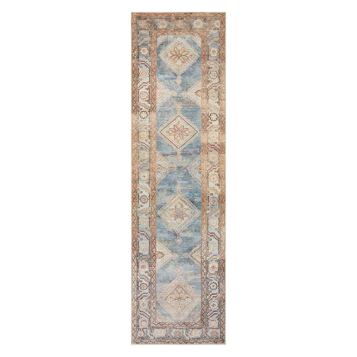 (D569) Freya Blue Multicolor Medallion Washable Runner, 2x7