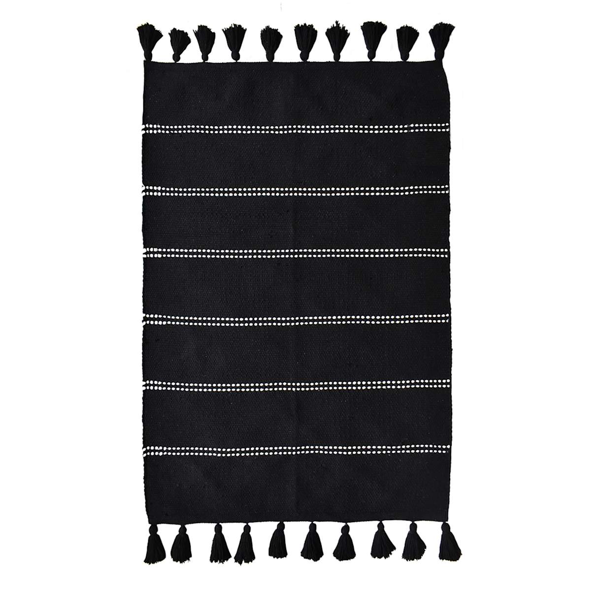 (D582) Honeybloom Black Striped Woven Accent Rug, 2x4