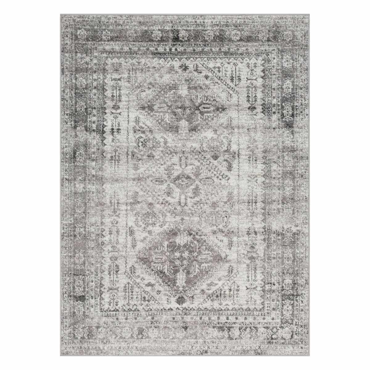 (D507) Monte Carlo Grey Medallion Border Area Rug, 5x7