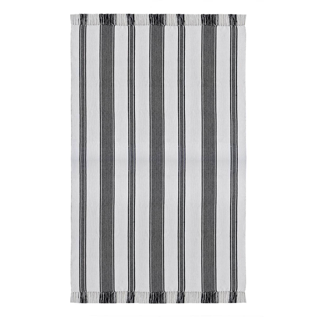 (D551) Honeybloom Flatweave Ivory & Black Striped Area Rug, 5x7