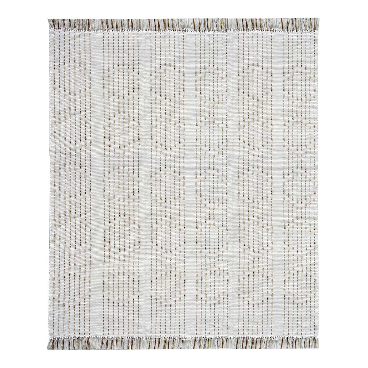 (D552) Honeybloom Flatweave Ivory & Beige Fringe Area Rug, 8x10