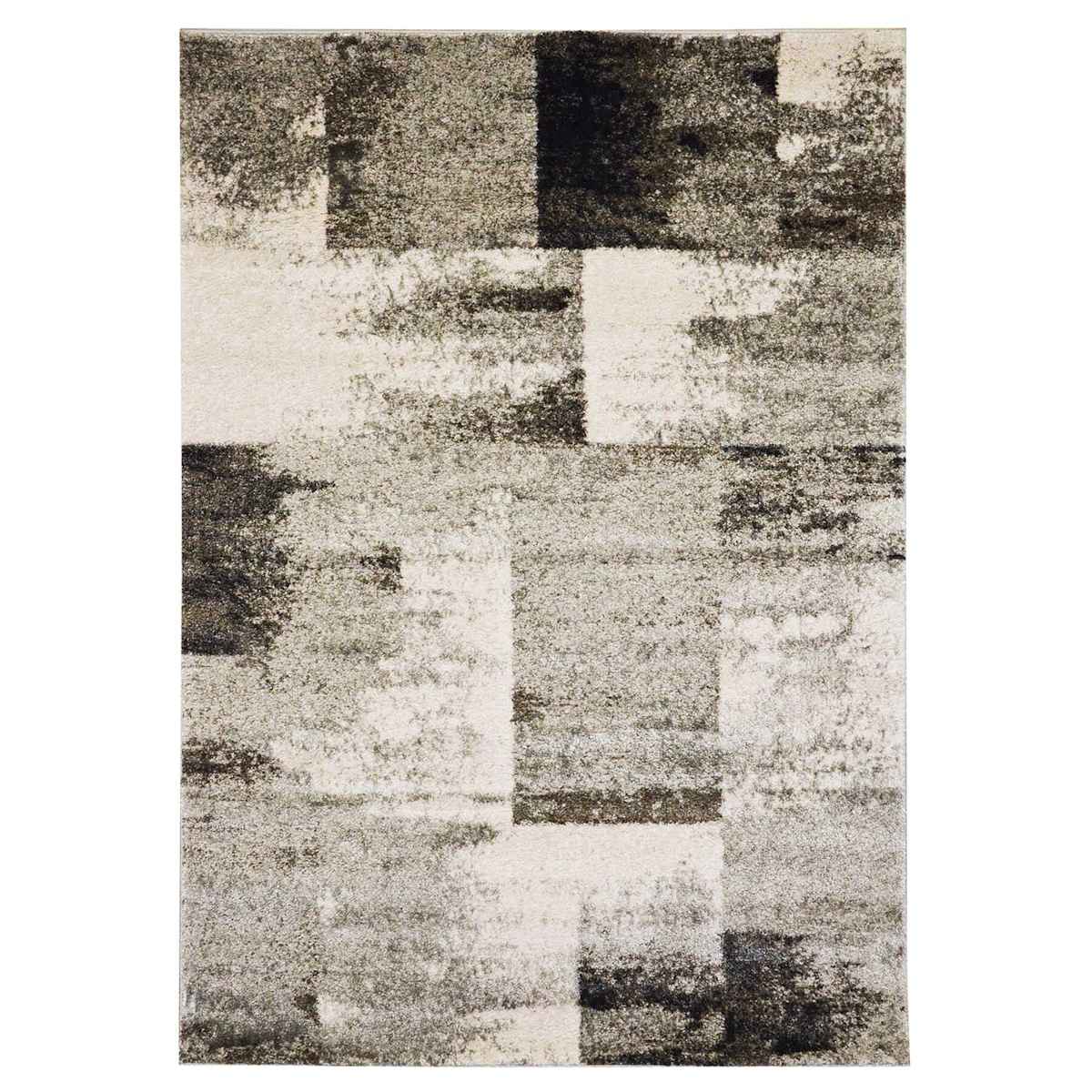 (B501) Ivory & Grey Abstract Block Runner, 2x6