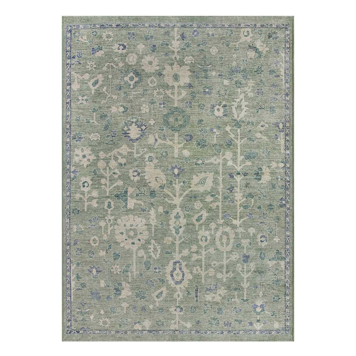 (B897) Honeybloom Green Floral Medallion Washable Area Rug, 5x7