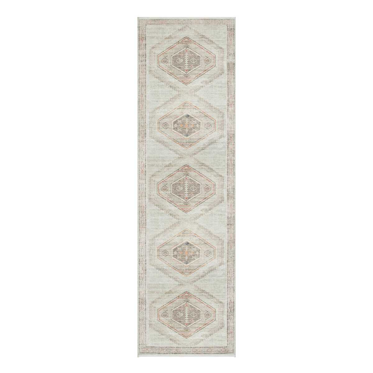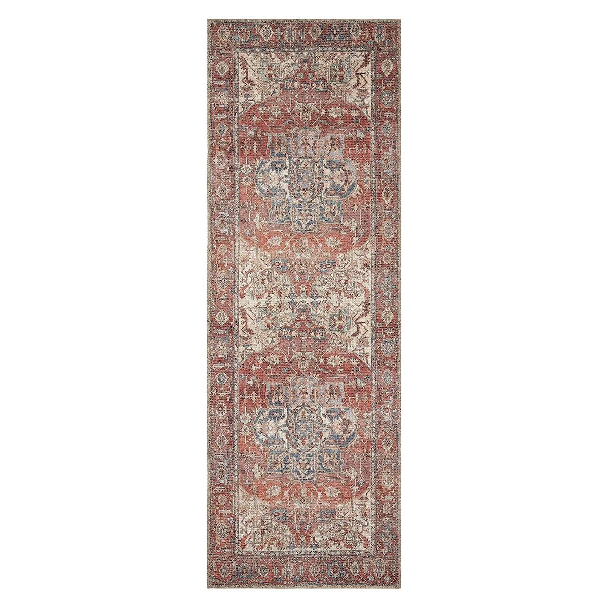 (B670) Valentina Terracotta Multicolor Medallion Runner, 2x7