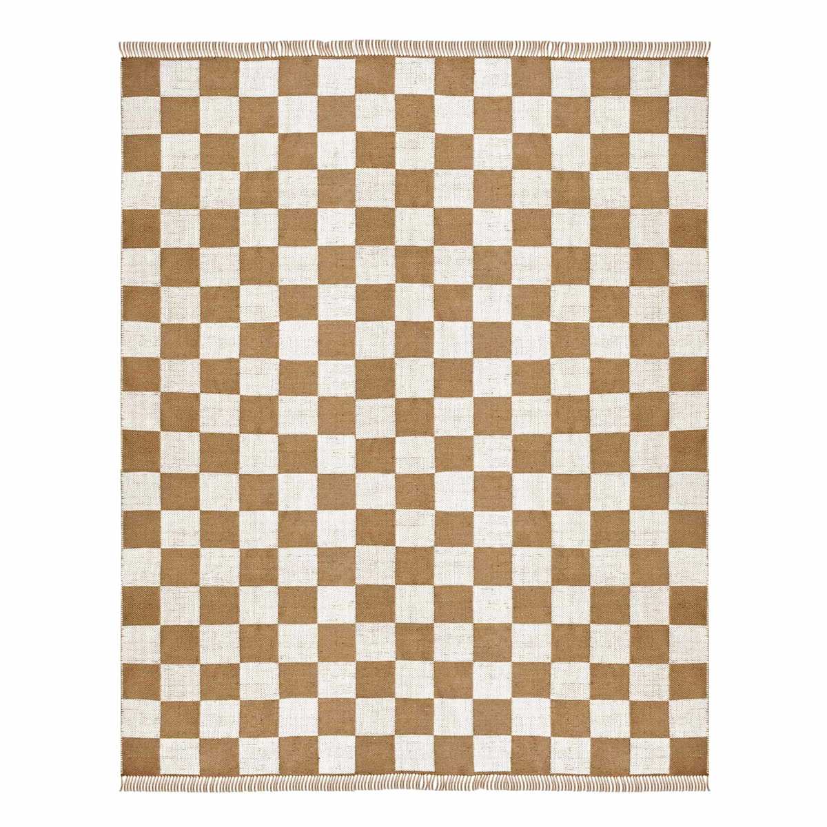 (B871) Honeybloom Brown & Natural Checkered Jute Area Rug, 8x10