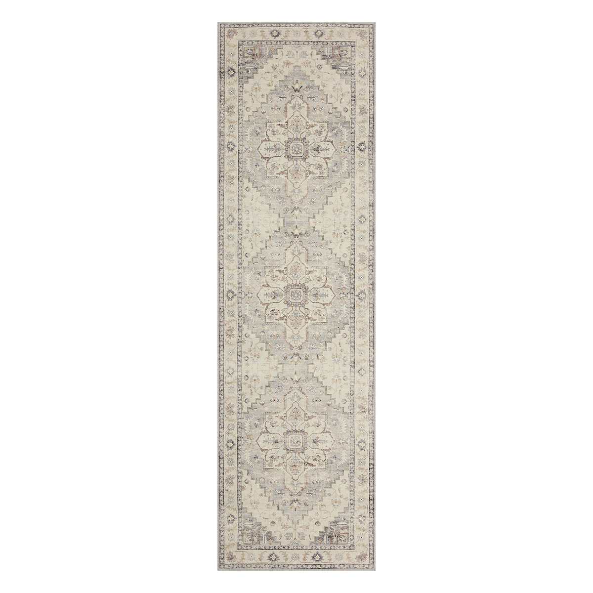 (D576) Honeybloom Grand Villa Taupe Medallion Runner, 2x7