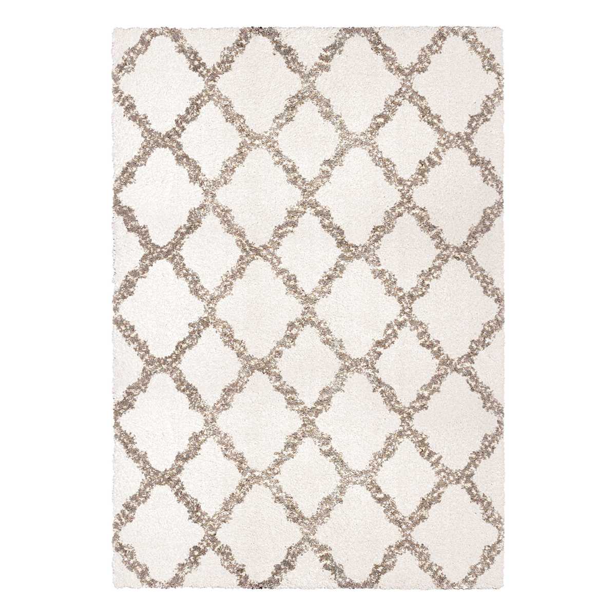 (C162) Windsor White Quatrefoil Shag Area Rug, 5x7
