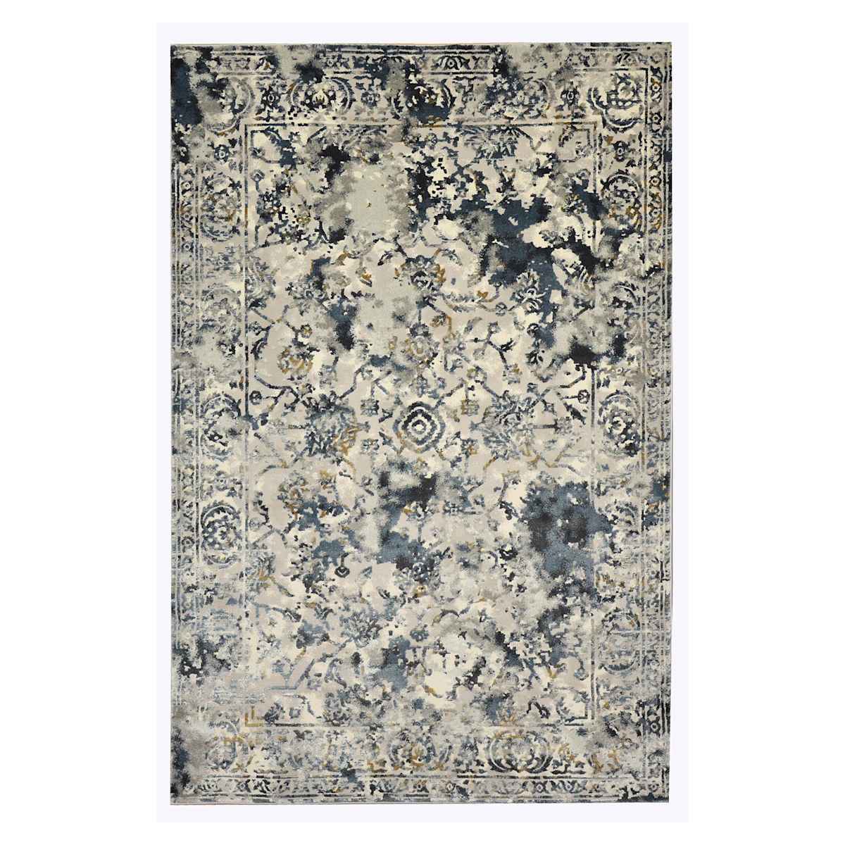 (D590) Lillian Blue Multi Medallion Washable Area Rug, 8x10