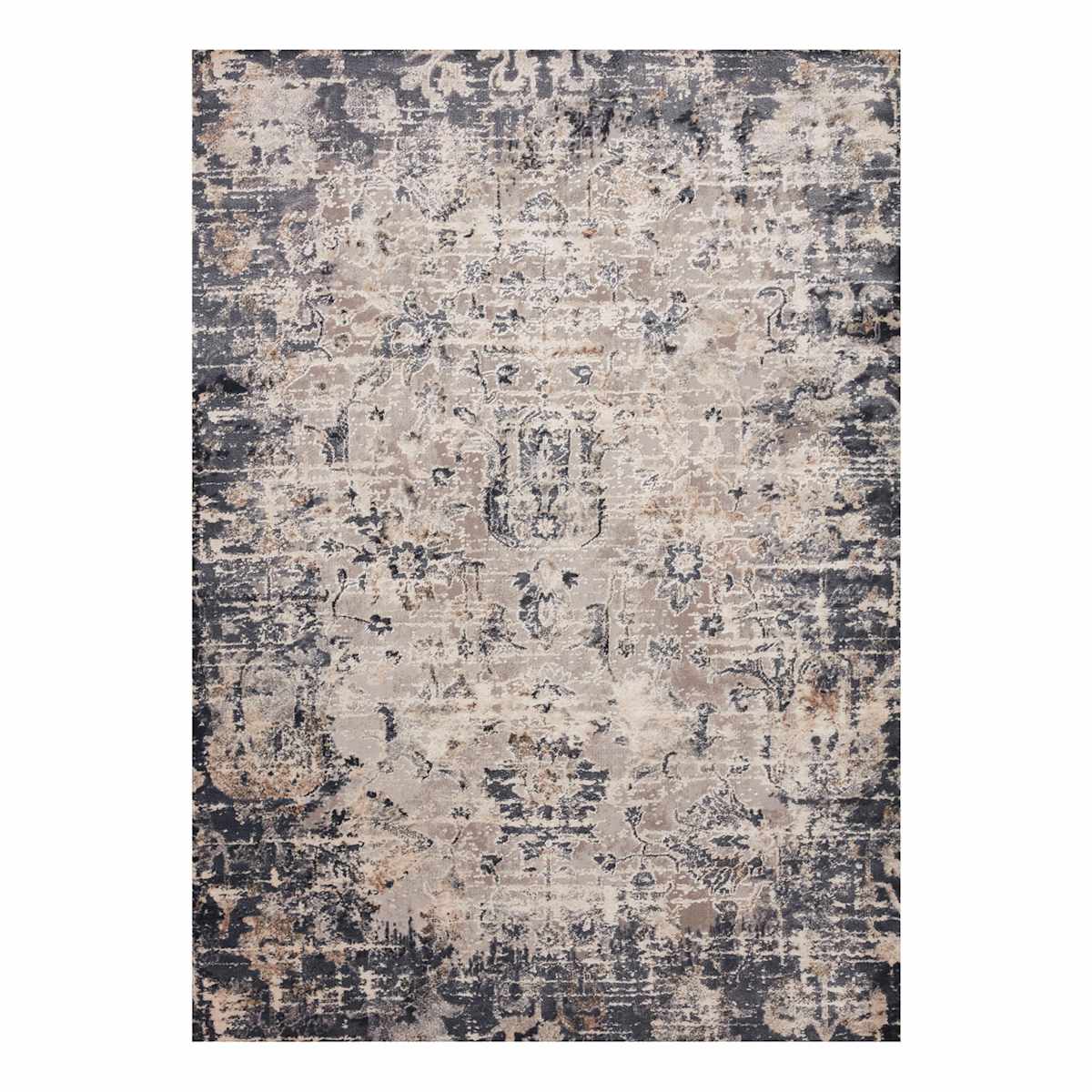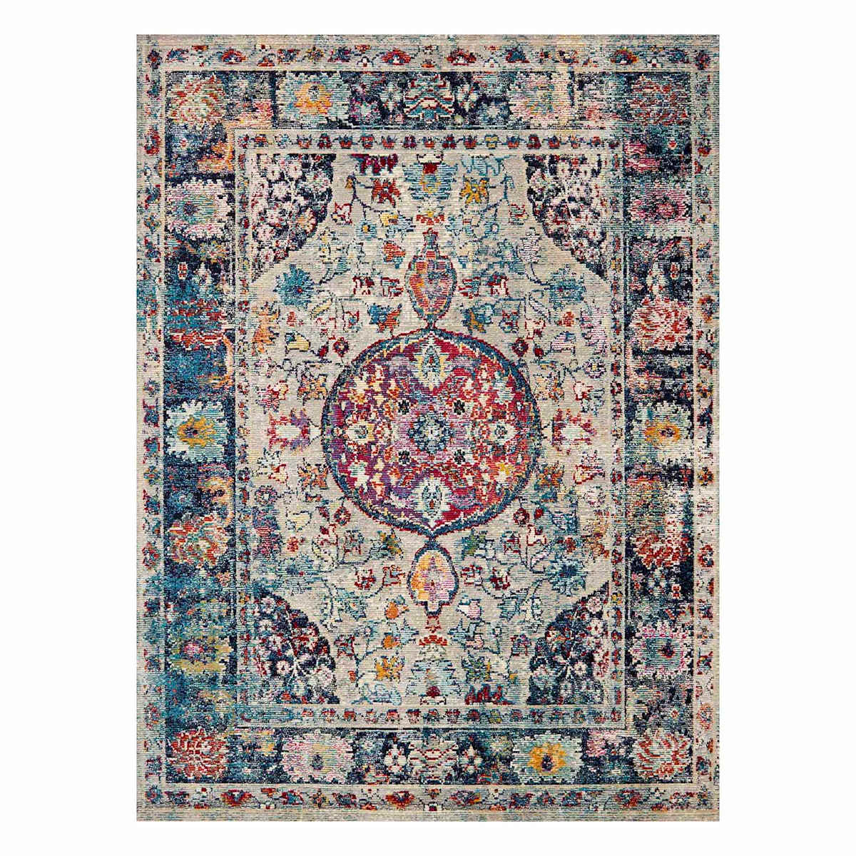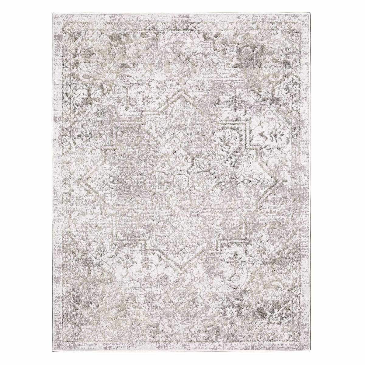 (A509) Found & Fable Thornhill Grey & Gold Floral Medallion Area Rug, 7x10