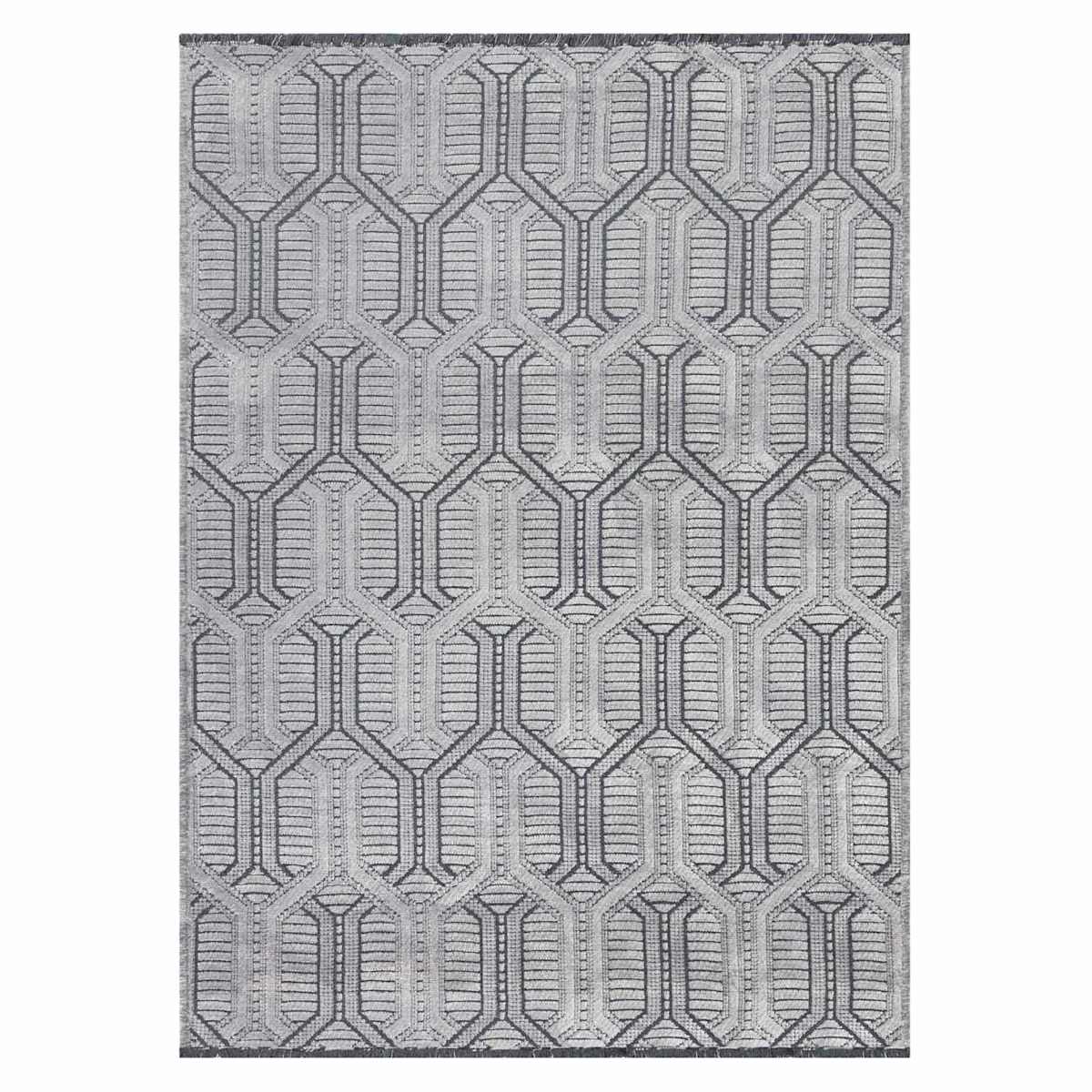 (B868) Crosby St. Kilim Grey Geo Matrix Washable Area Rug, 5x7