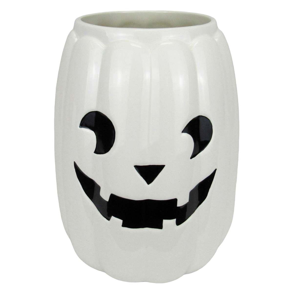 Tricky Treats White Ceramic Jack-o'-Lantern Planter, 11"