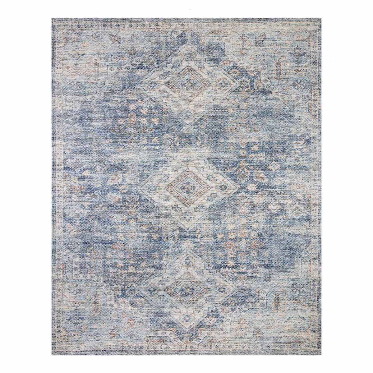(B822) Whittington Blue Floral Medallion Area Rug, 8x10