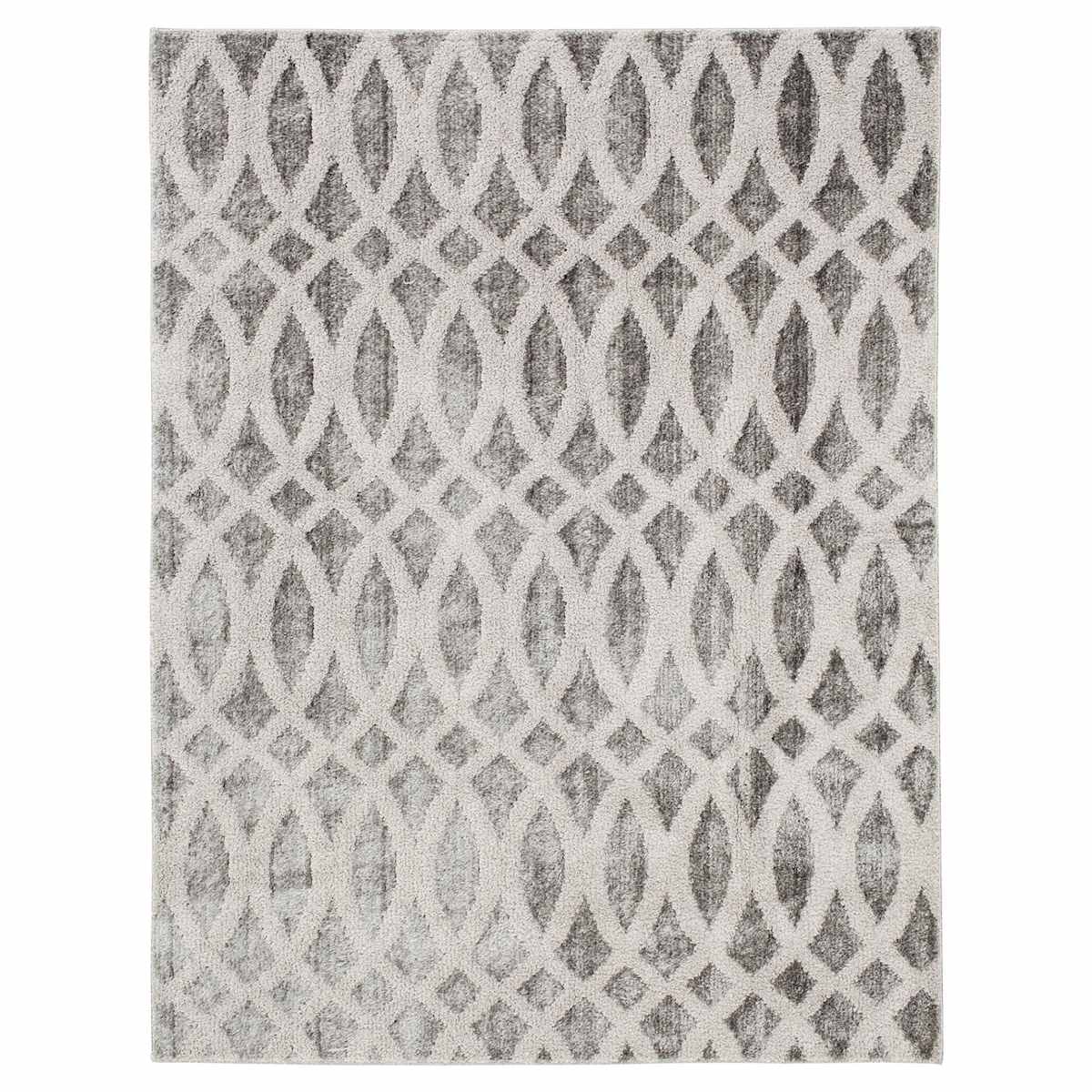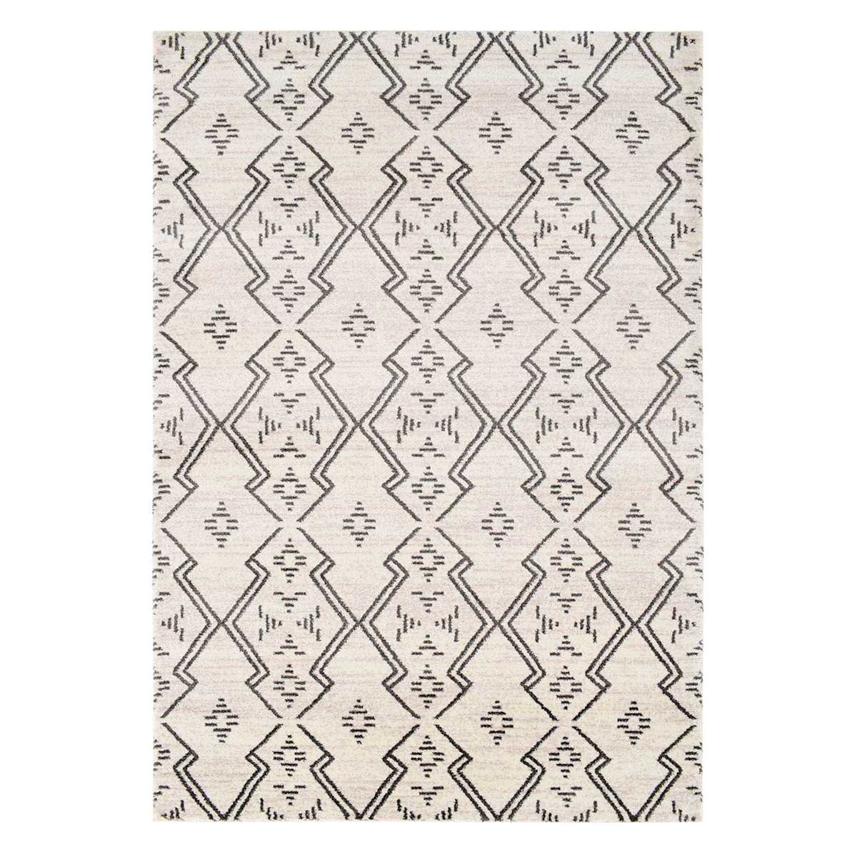 (A463) Raymond Ivory & Dark Grey Moroccan Styled Area Rug, 5x8