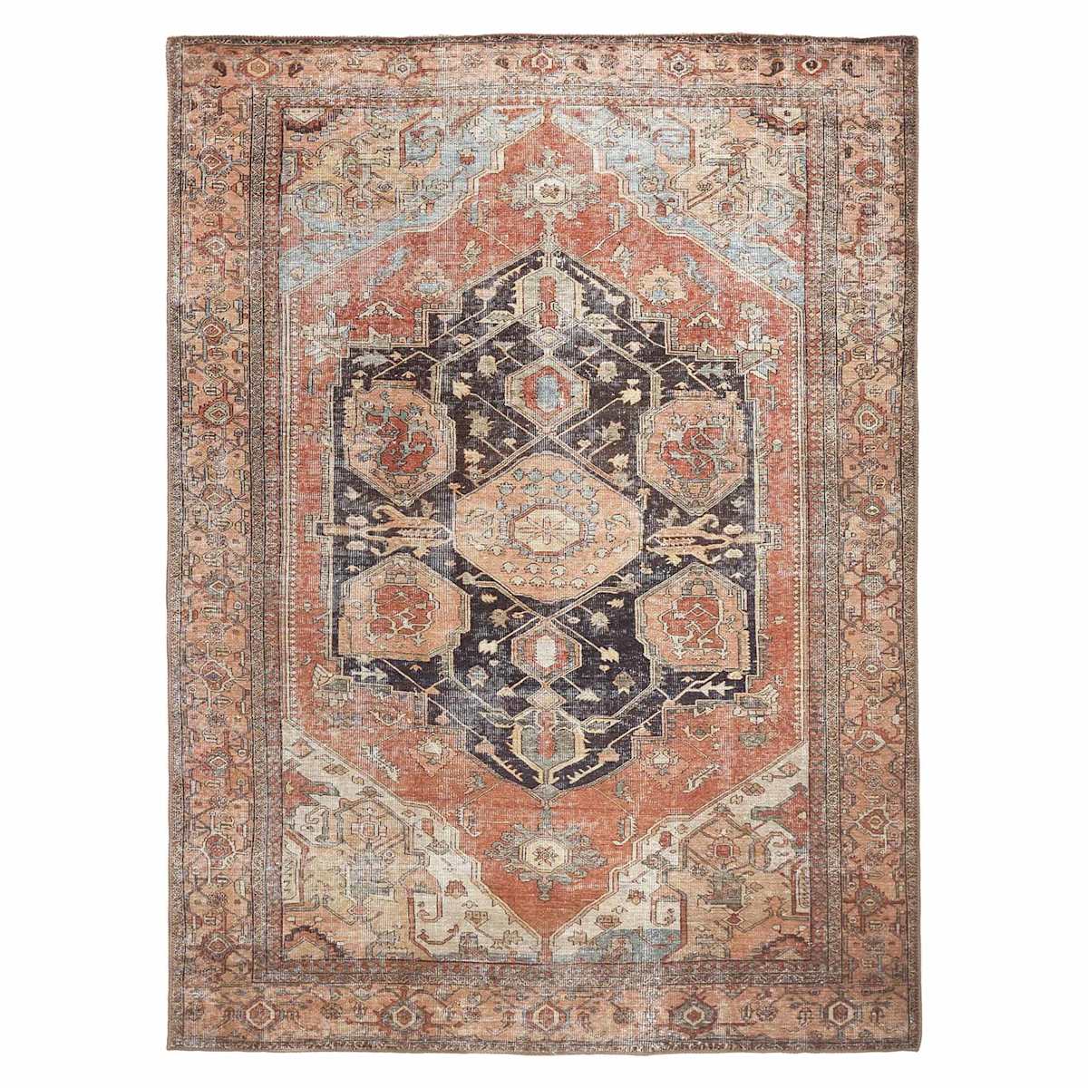 (B652) Genevieve Red & Blue Distress Look Area Rug, 8x10