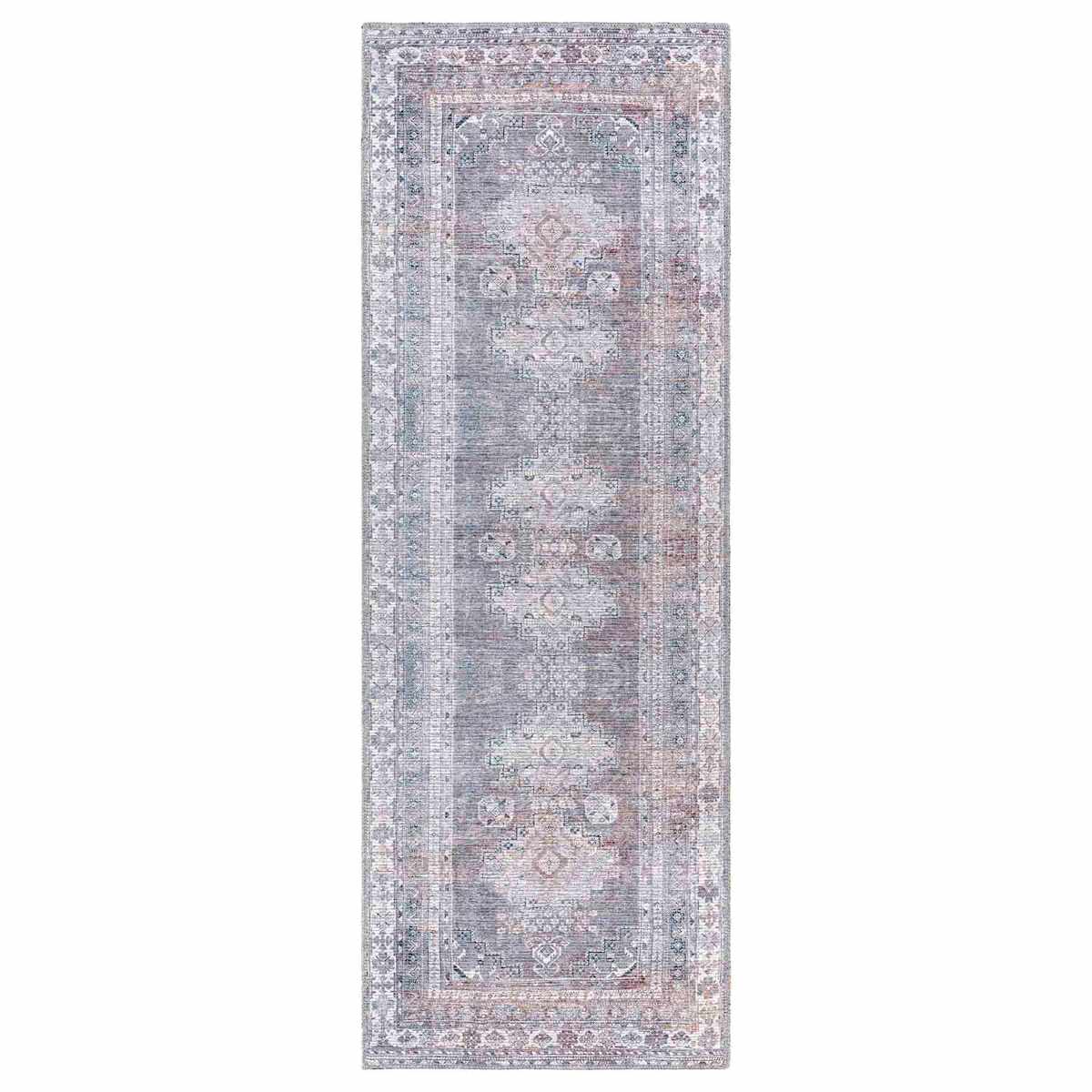 (B785) Colin Blue Medallion Washable Runner, 2x7