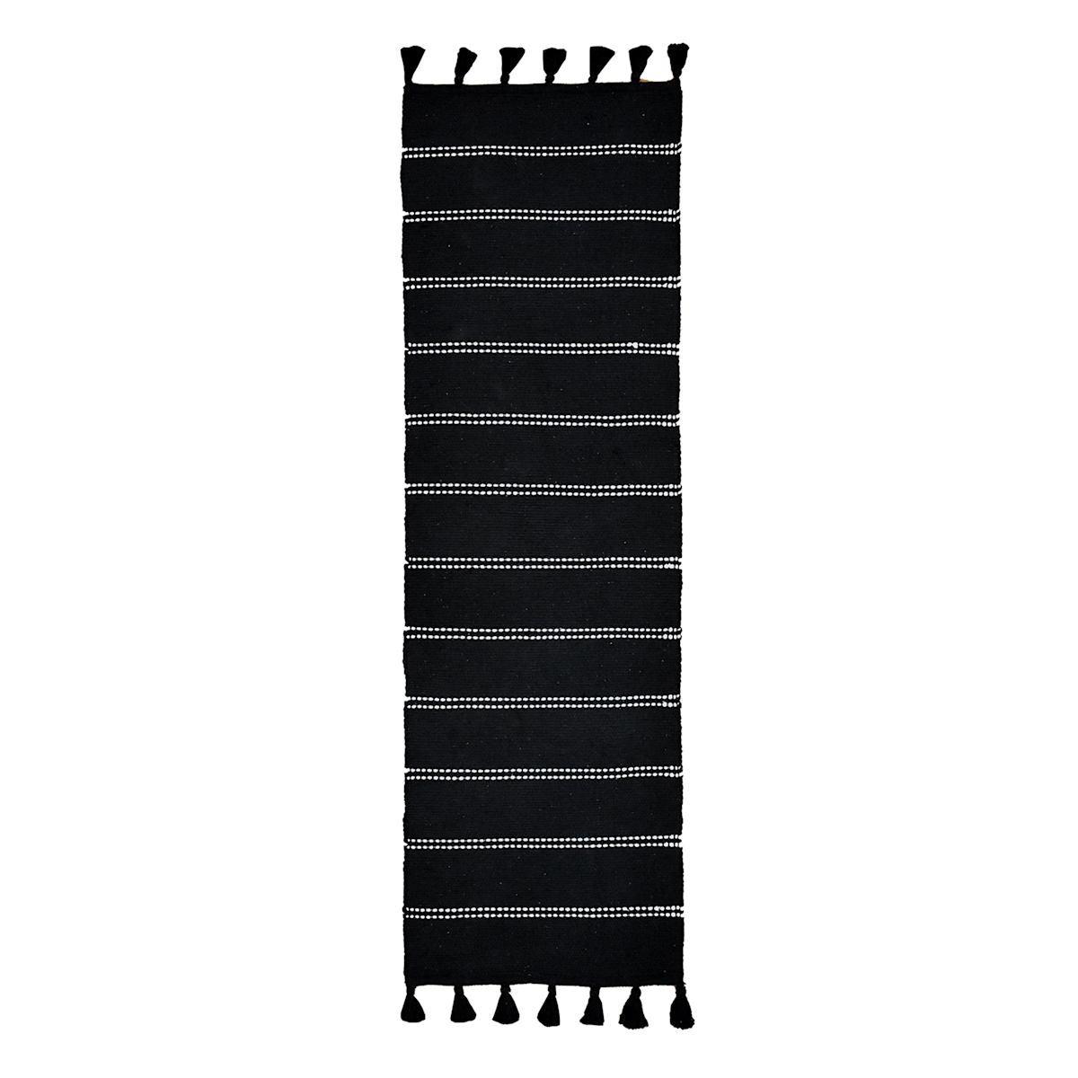 (D582) Honeybloom Woven Black Striped Runner Rug, 2x7