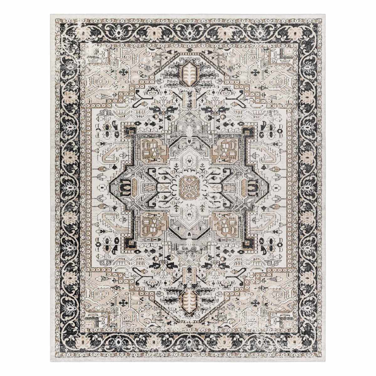 (D600) Lavadora Black & Taupe Medallion Washable Area Rug, 8x10