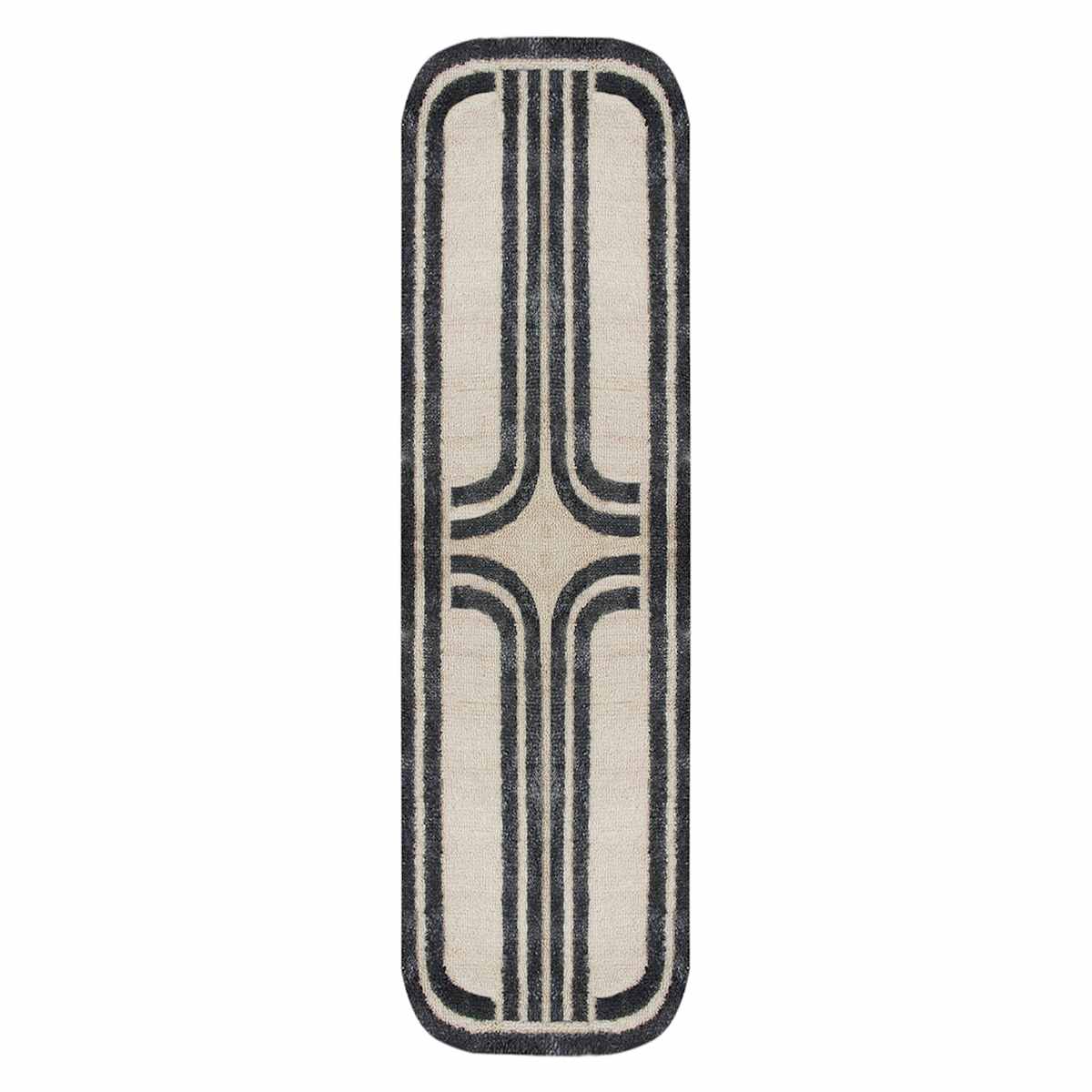 (B894) Black & Beige Oval Geometric Runner, 2x7