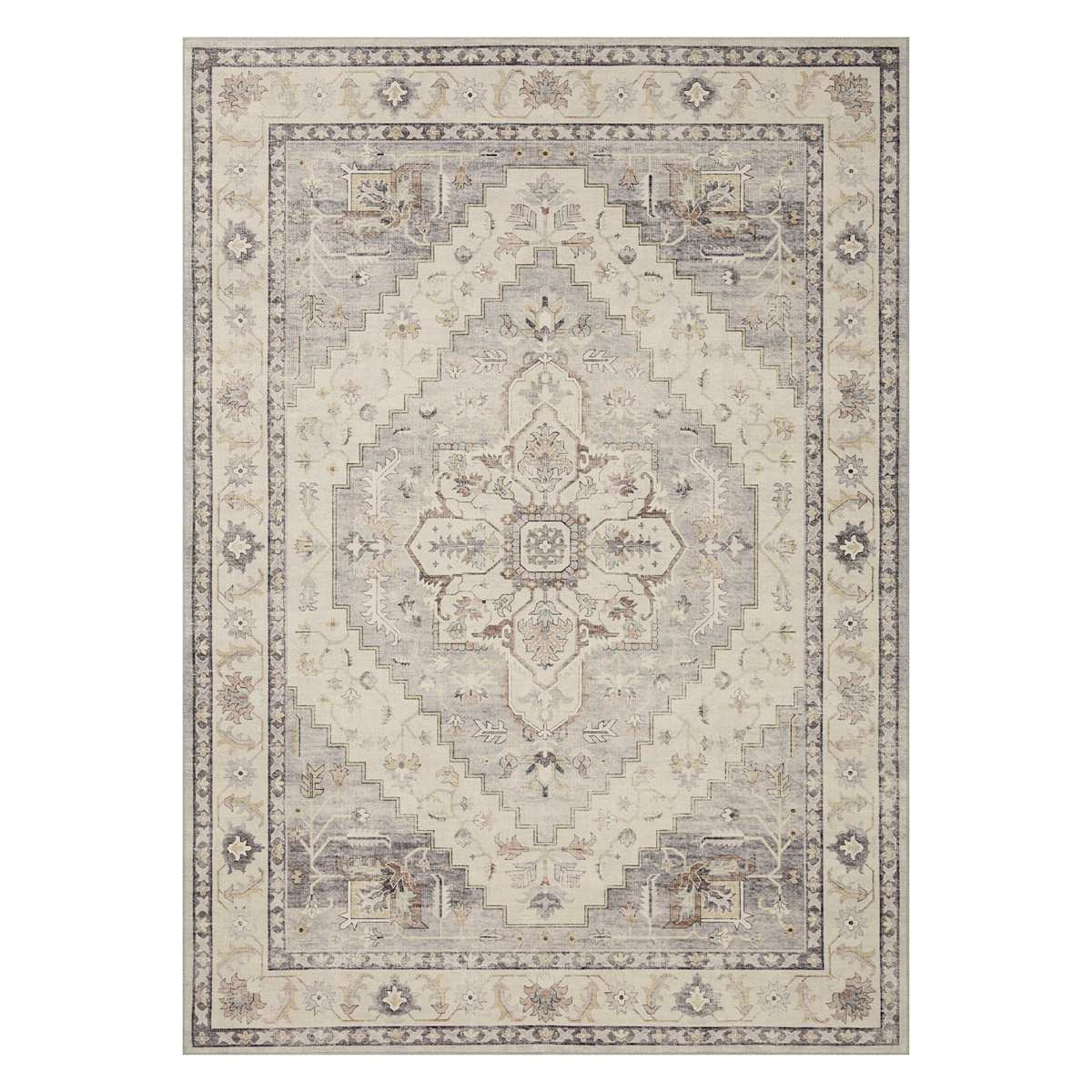 (D576) Honeybloom Grand Villa Taupe Medallion Area Rug, 5x7