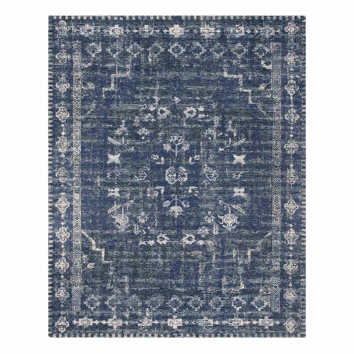 (B823) Teagan Navy Blue Floral Flatweave Area Rug, 8x10
