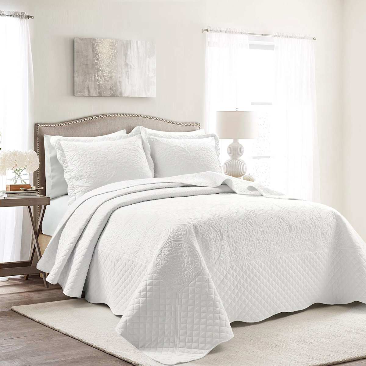 Found & Fable 3-Piece White Medallion Scalloped Bedspread Set, King