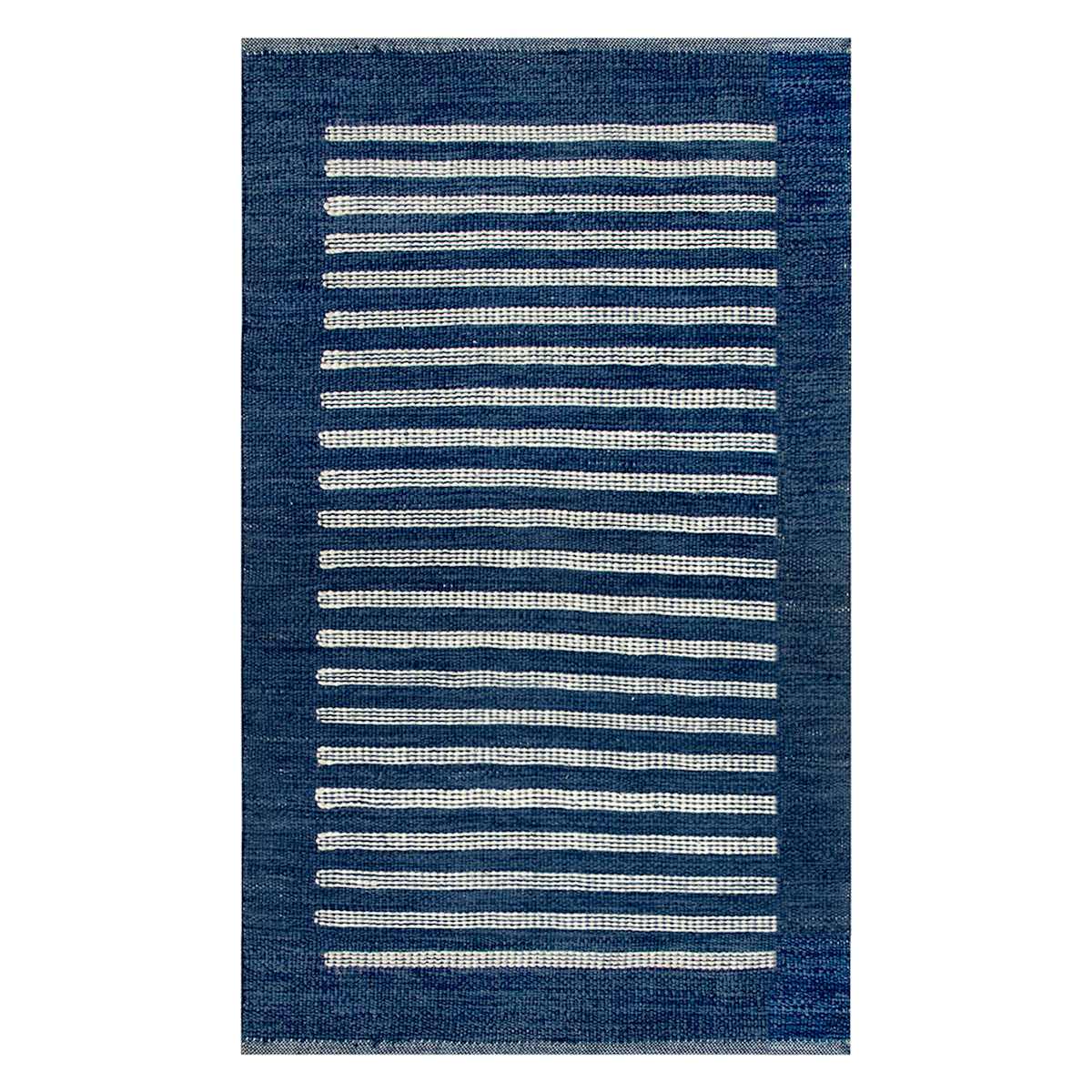 (B856) Roka Blue & White Striped Accent Rug, 3x5