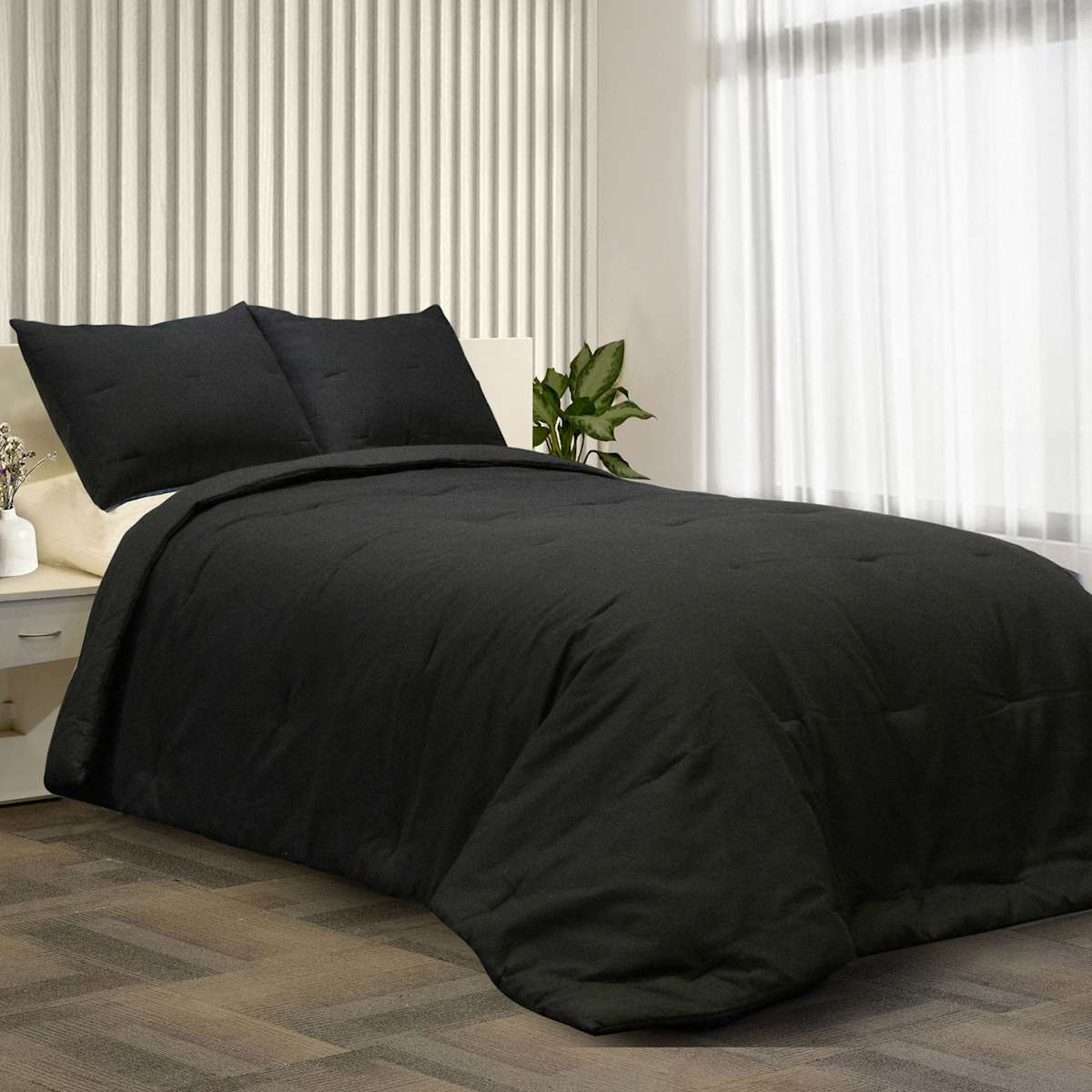 Crosby St. 3-Piece Black Cotton Textured Comforter Set, King