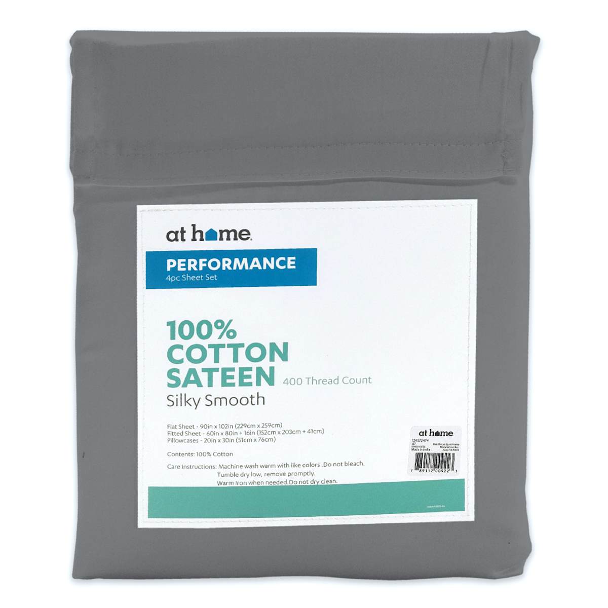 4-Piece Grey 400 Thread Count Cotton Performance Sheet Set, Queen
