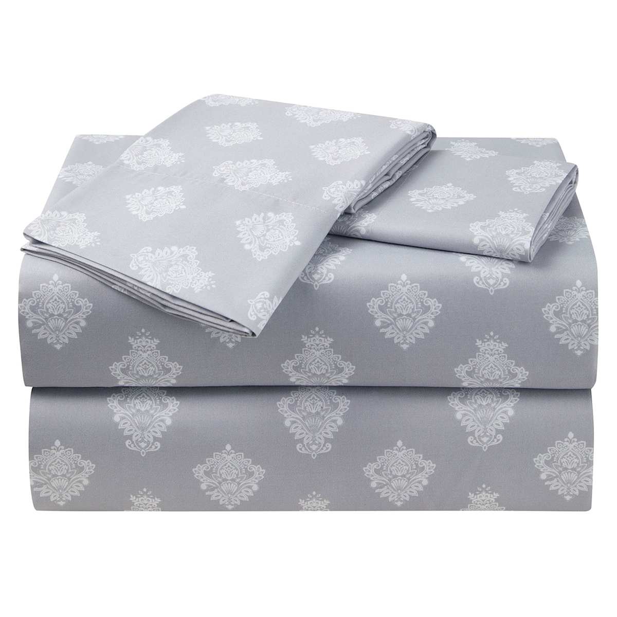 3-Piece Grey Damask Print Microfiber Essential Sheet Set, Twin