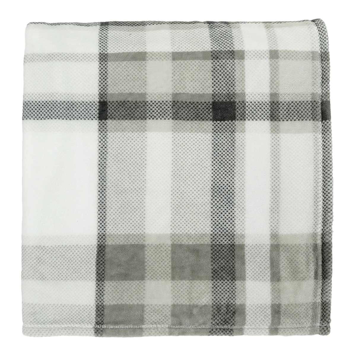 Grey Plaid Plush Bed Blanket, Full/Queen