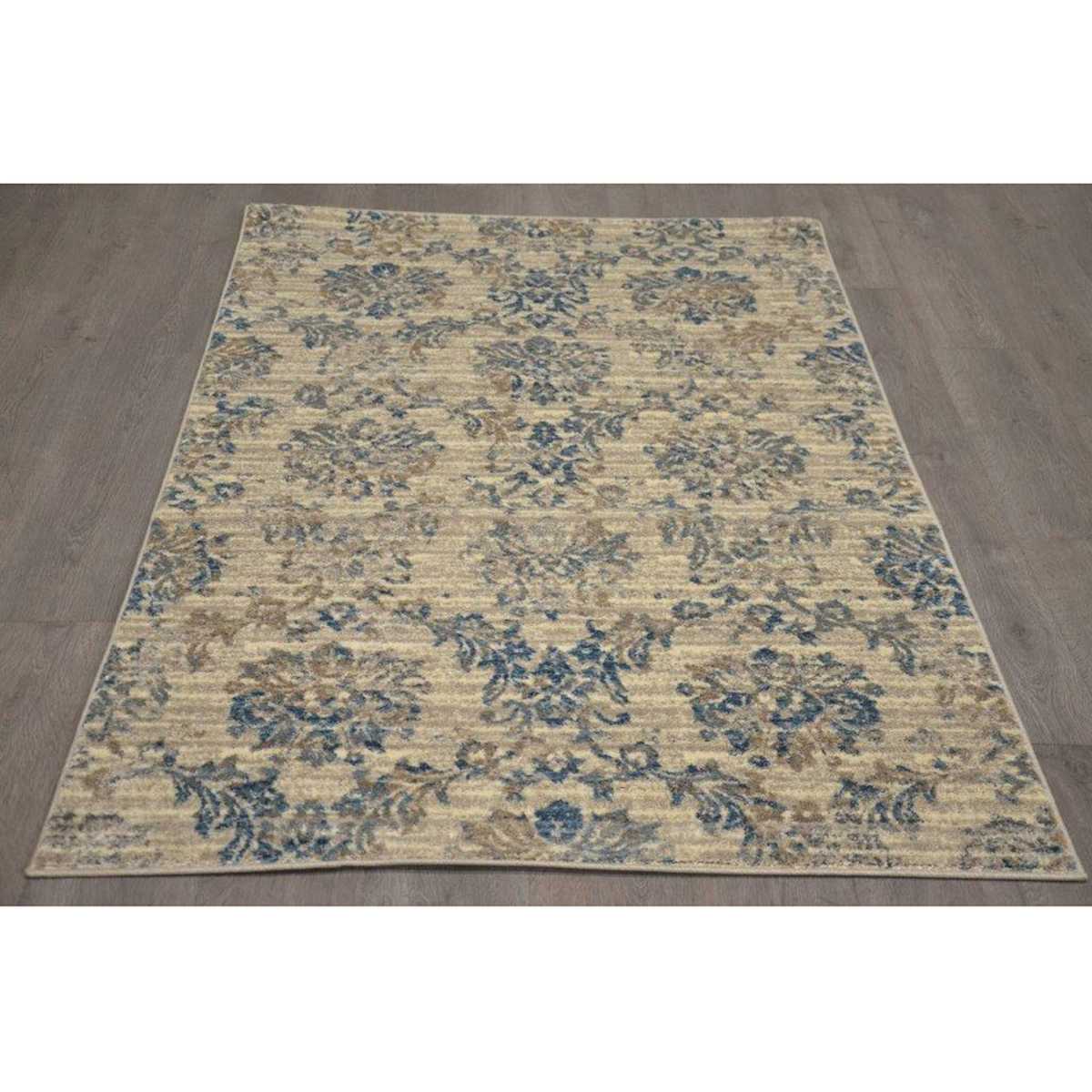 (B304) Ivory & Blue Floral Design Accent Rug, 3x5