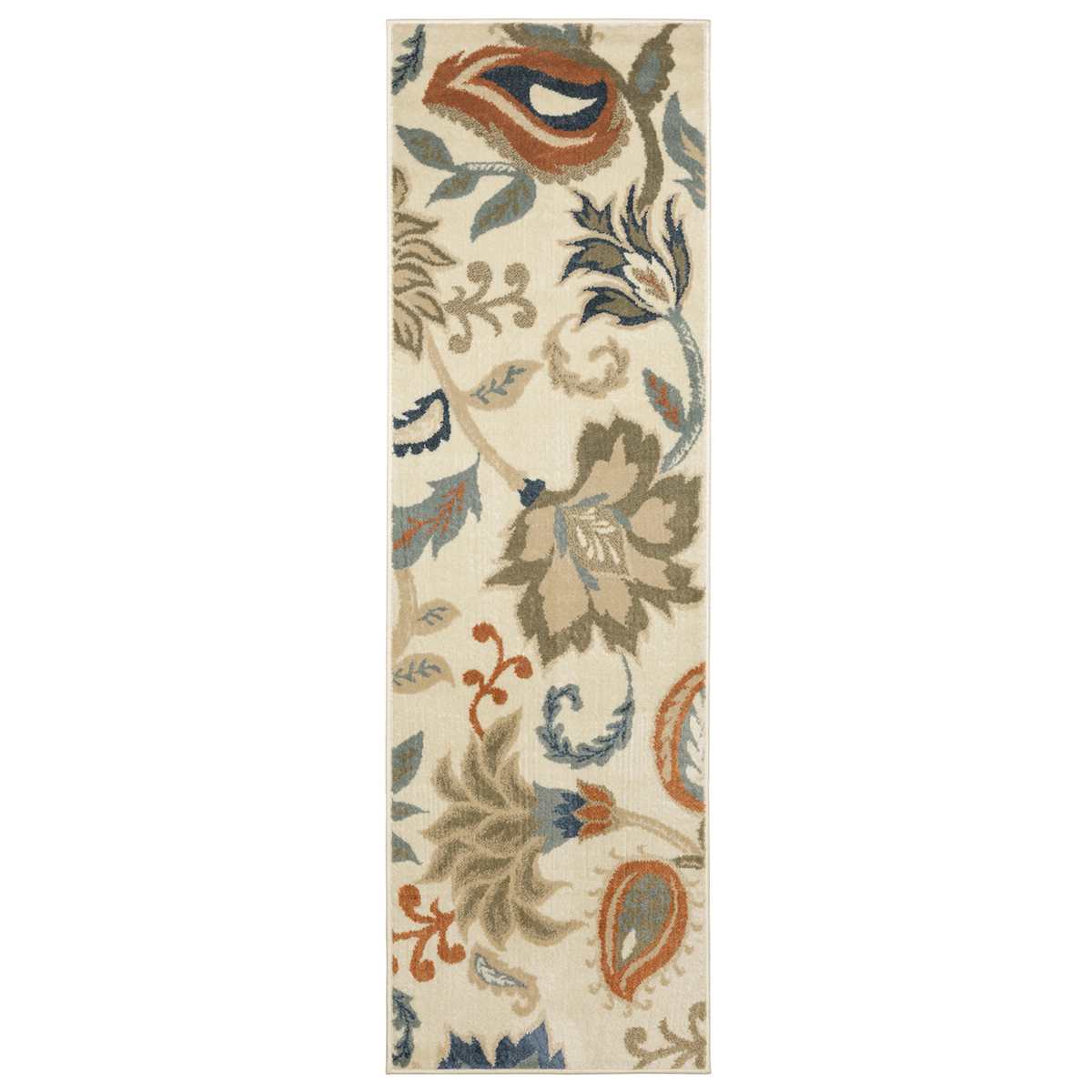 (D463) Casey Ivory, Grey & Blue Floral Runner, 2x7